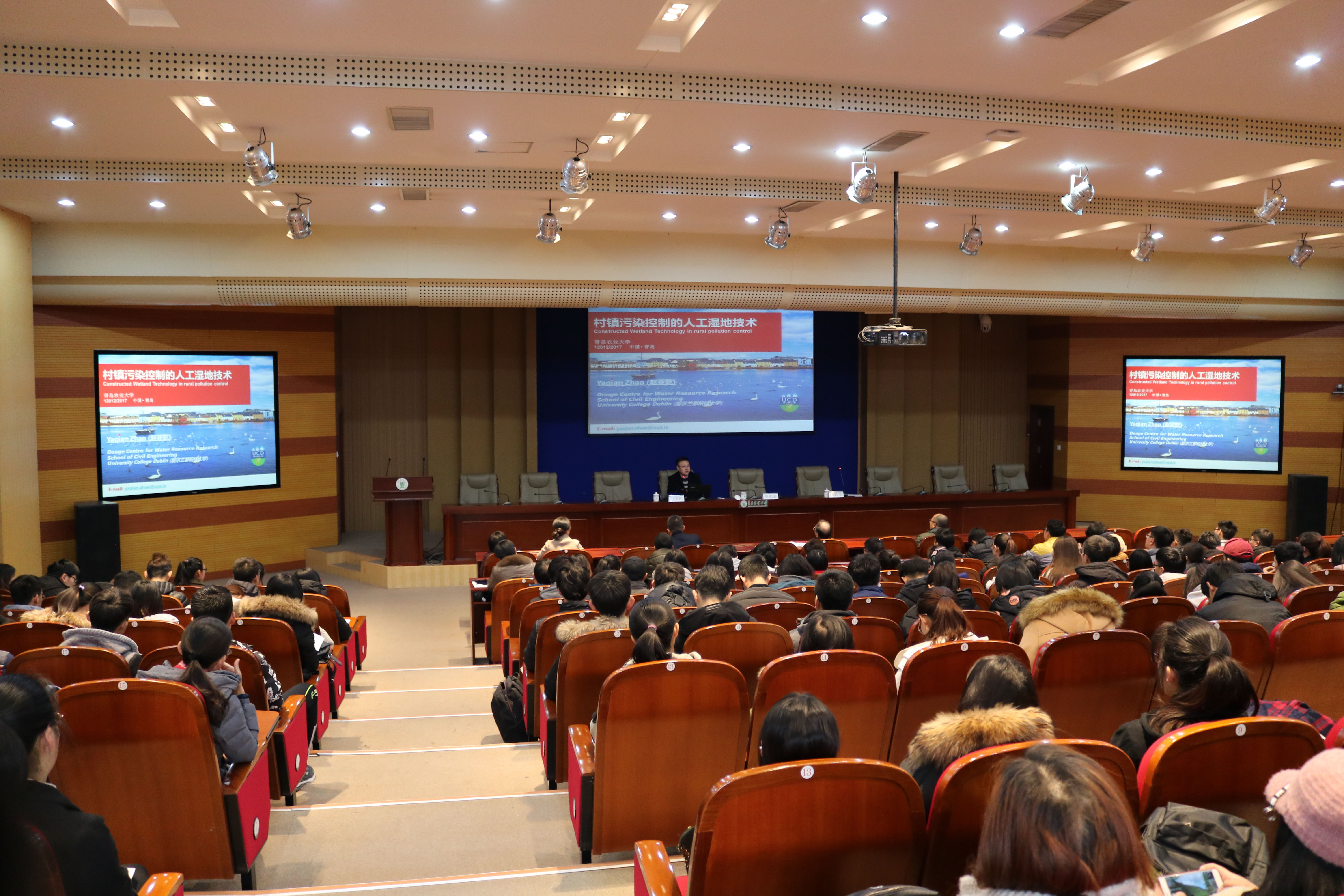 聘任仪式结束后,赵亚乾教授作了题为“村镇污染控制的人工湿地技术应用与发展”的报告,院长崔德杰,副院长王凯荣、柴超等300余名师生参加本次报告会。