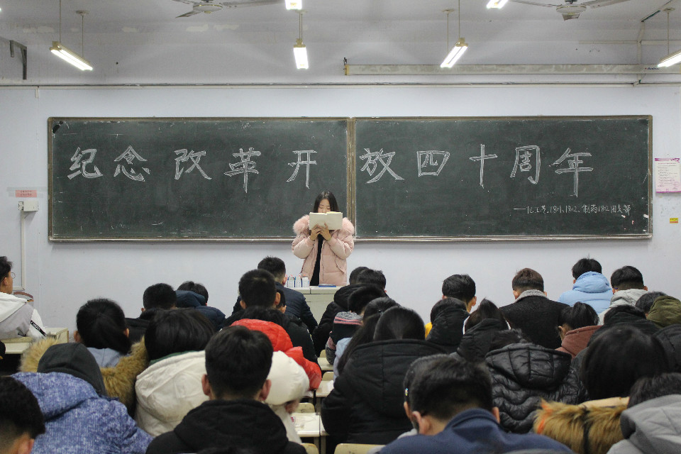 12月16日,青岛农业大学化学与药学院于教学区开展主题为“纪念改革开放四十周年”的教育活动,学院16、17、18级全体同学参加。