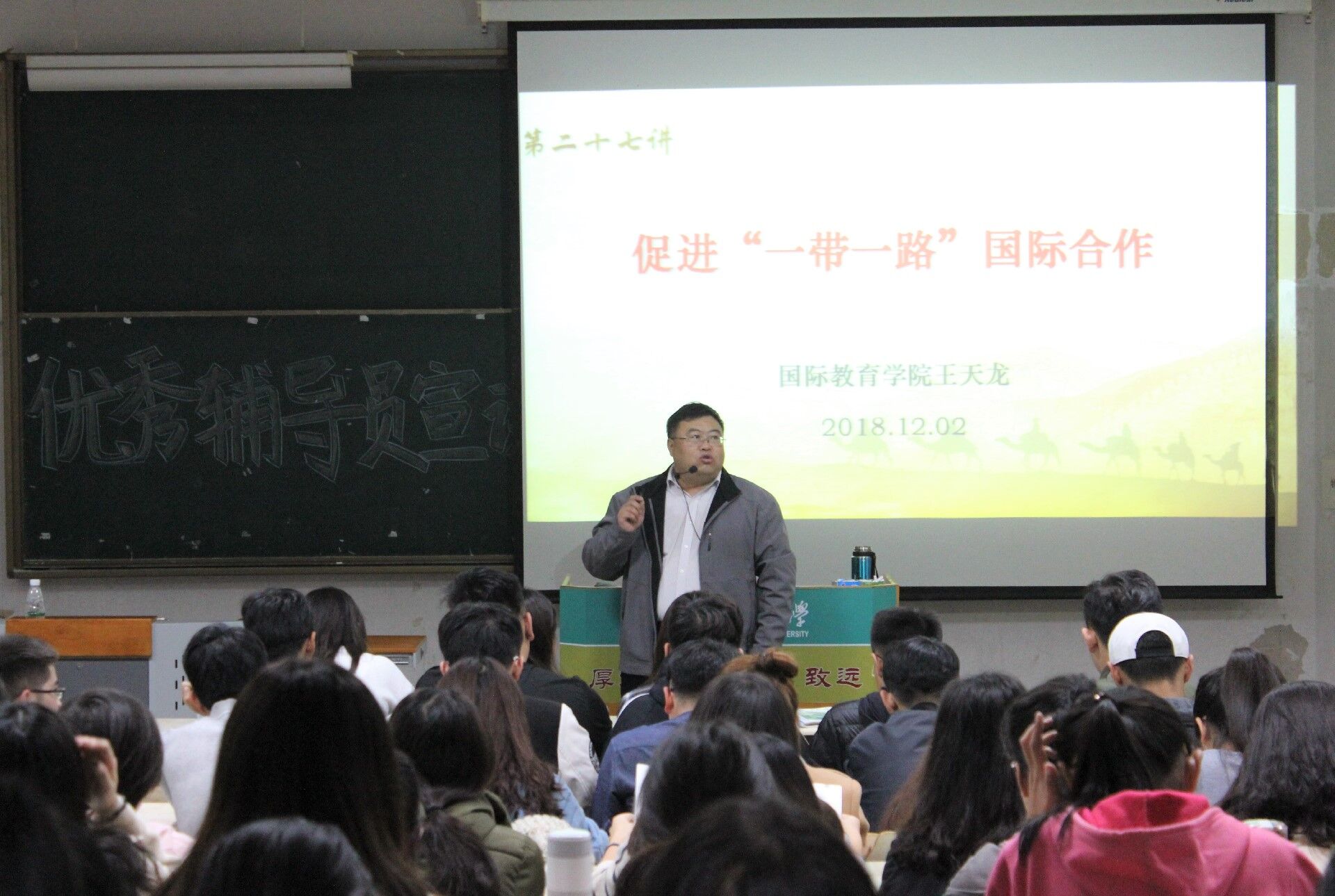 12月2日,青岛农业大学国际教育学院开展优秀辅导员宣讲活动。本次宣讲由国际教育学院党总支副书记、副院长王天龙主讲,17、18级学生到场参加。