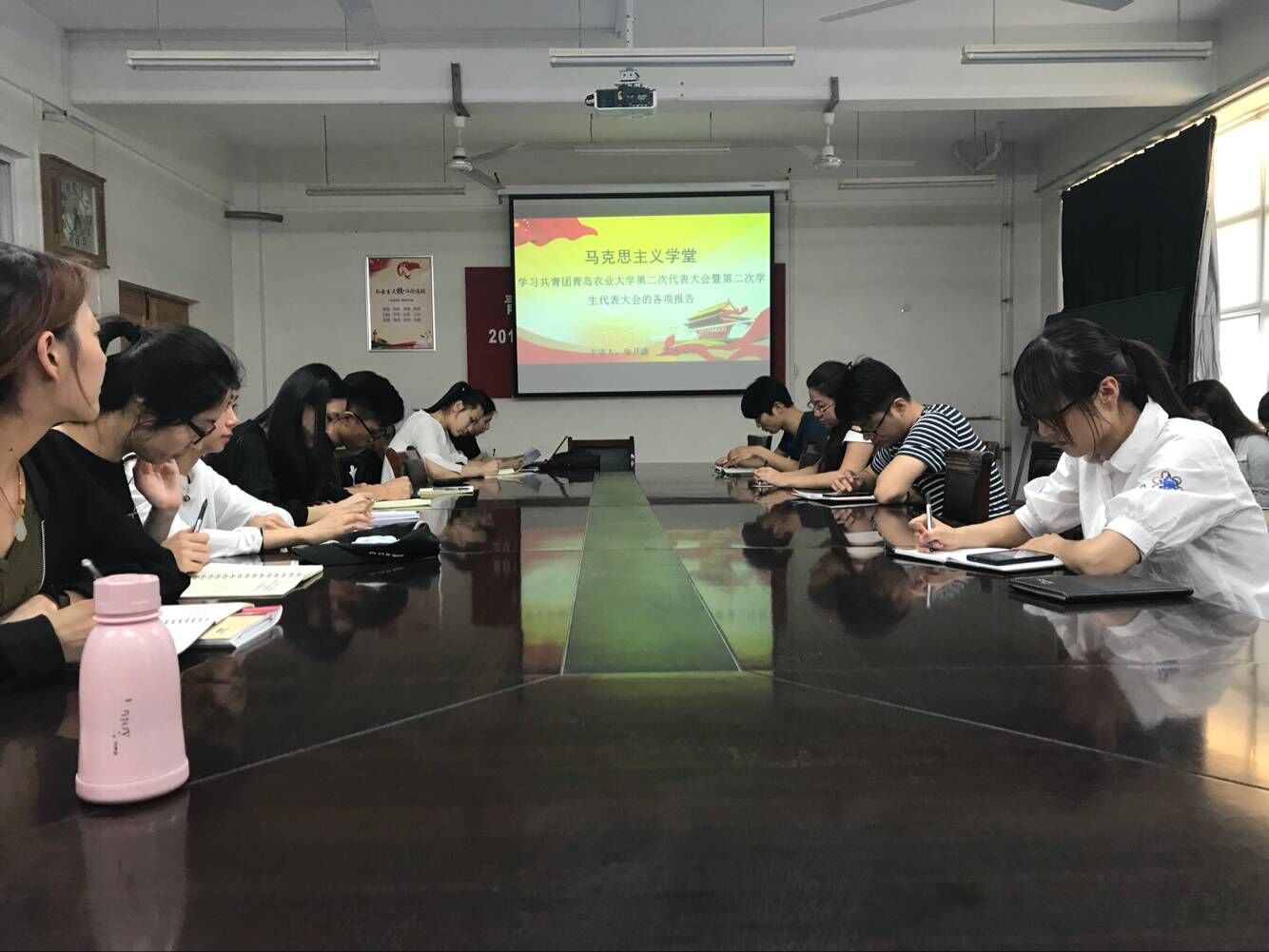 6月1日,生命科学学院“马克思主义学堂”在生物楼C305举办第七讲,全体学生党员参加并学习共青团青岛农业大学第二次代表大会、第二次学生代表大会报告。