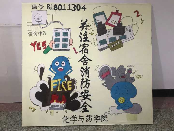 11月3日至10日,在班主任老师的带领下,学院各班级都开展了“消防安全进学校、共筑安全防火墙”主题班会。各班班主任首先向同学们强调了消防安全的重要性,并就电吹风、无人充电等宿舍安全隐患的整治处理工作进行具体说明。随后,各班同学以“麻痹大意酿大祸”为话题,展开热烈讨论,班内重视消防安全之风不断强劲。而院融媒体中心的平面设计中心以“宿舍安全隐患闯大祸”为主题,精心设计四格漫画展板,并将其于教学区展出。一经推出,好评如潮。