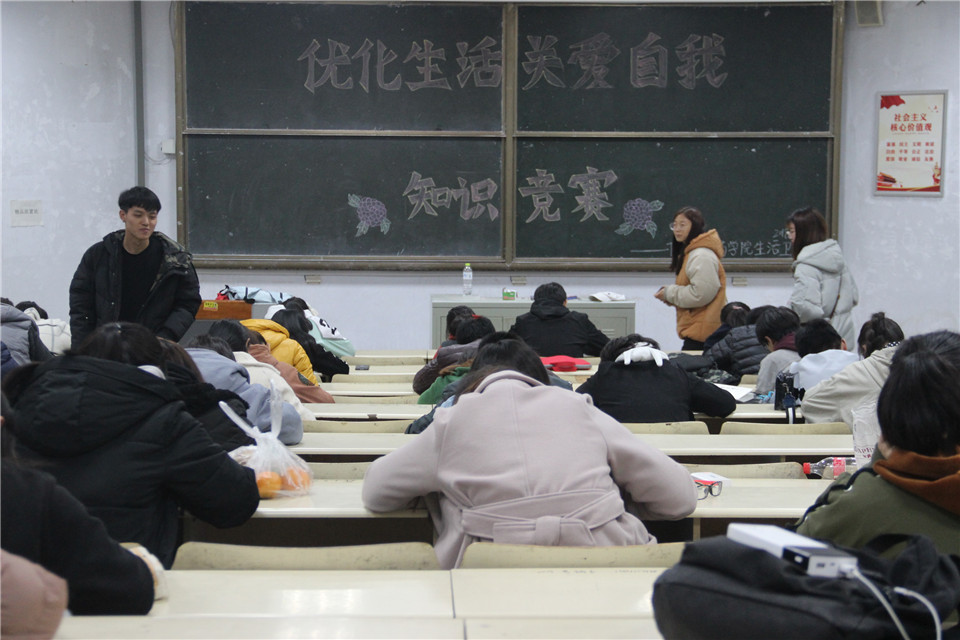 11月9日,化药学院于教学区开展“优化生活、关爱自我”知识竞赛,2017、2018级学生积极参赛。此次竞赛单设笔试环节,以消防安全、食品安全等知识为主要出题内容。赛前,各选手认真学习相关题库内容,牢记消防安全、食品安全等知识。赛中,参赛选手们聚精会神、胸有成竹、奋笔疾书。在激烈的角逐后,本次竞赛最终决出一等奖三人。对于本次活动,参赛选手互抒己见。来自化学工程与工艺1701的参赛选手王腾表示:“此次竞赛是一个助推学习消防知识的良好契机,经过此次竞赛,我掌握了许多消防知识,在今后生活中将会不断践行,杜绝消防事故的发生。”