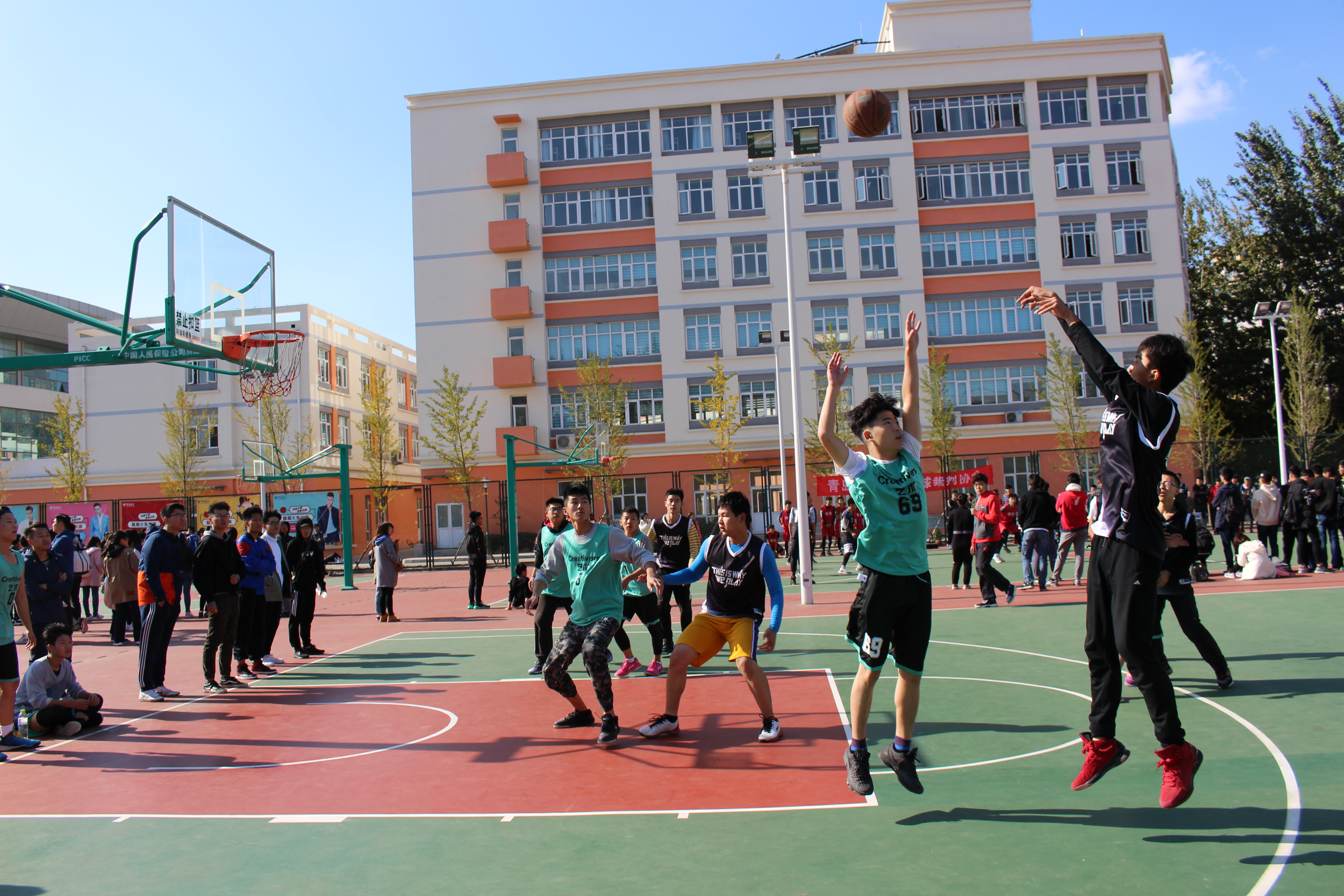 11月3日,2017年“新生杯 ”大学生篮球赛在西篮球场正式打响,植物医学学院新生篮球队迎战艺术学院,双方展开激烈的角逐。