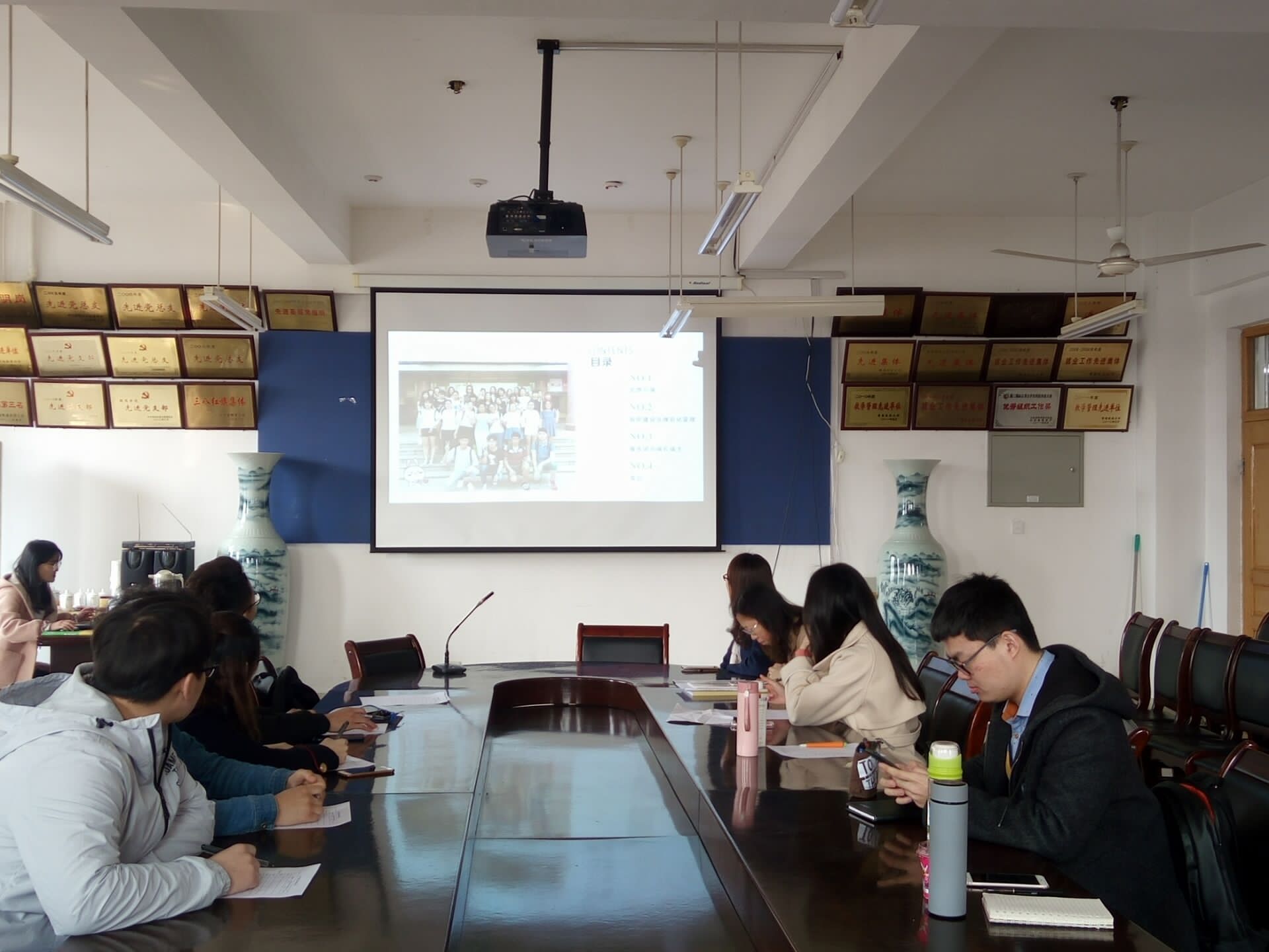 考评主要从思想引领、组织建设及规范化管理、服务团员成长成才等方面进行。各团支部前期做了充足的准备工作,整理了充实详尽的展示资料。本次会议上,各团支部以PPT形式从思想建设、组织建设、学风建设、日常管理、班级特色和班级荣誉等方面对2017年团支部工作进行展示。汇报特色鲜明,内容丰富,条理清晰。经过各团支部汇报、评议小组评议、团委审核,评选出英语1502等6个班级为红旗团支部和先进团支部。