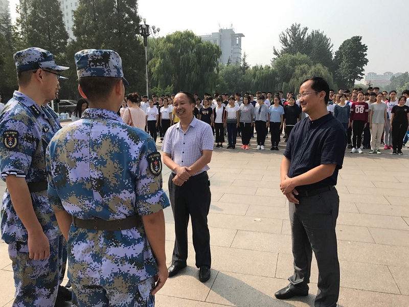 军训期间,学院党总支书记林志强、党总支副书记费廷坤、辅导员孙贝贝、马双、孔一力均来到军训场地,向辛勤指导新生军训的各位教官表示感谢,同时希望教官在训练过程中对学生严格要求,认真对待本次军训任务。此外,林志强还叮嘱新生要认真对待军训,借军训磨炼意志品质,将军队中的纪律和毅力带到今后的学习和生活中去。