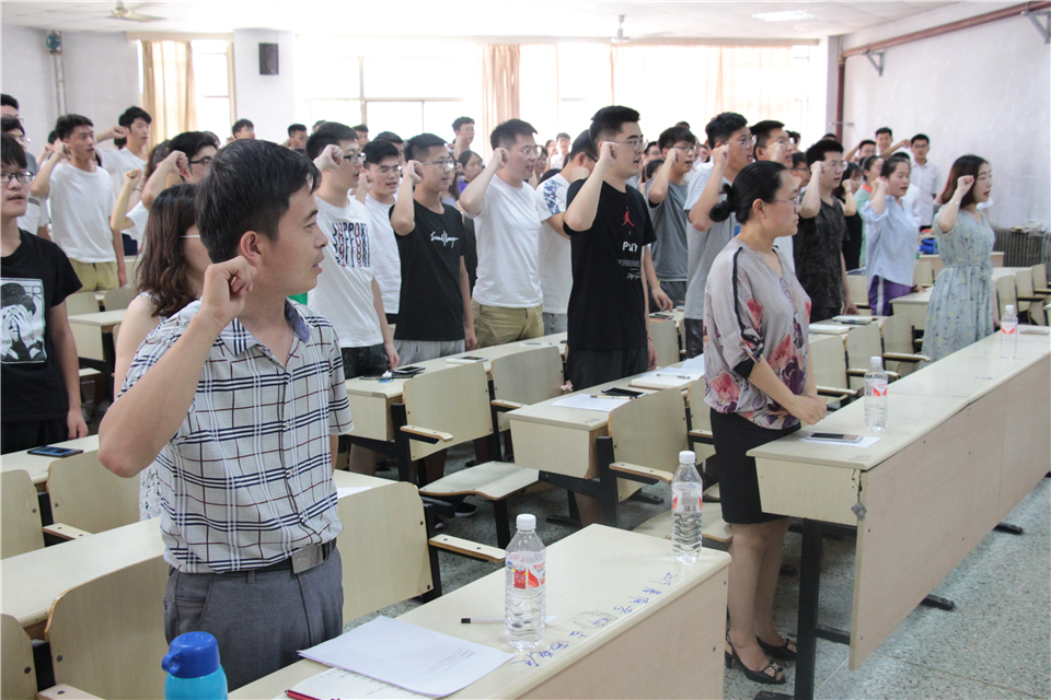 随后,周雪梅宣读2018年暑期社会实践立项名单,并对我与农产品电商同行实践团、“锌”火相传支教队和乡村情·文化振兴梦实践团三支代表队伍进行授旗。会议最后,在周雪梅的带领下,2018年暑期社会实践队全体队员进行宣誓。