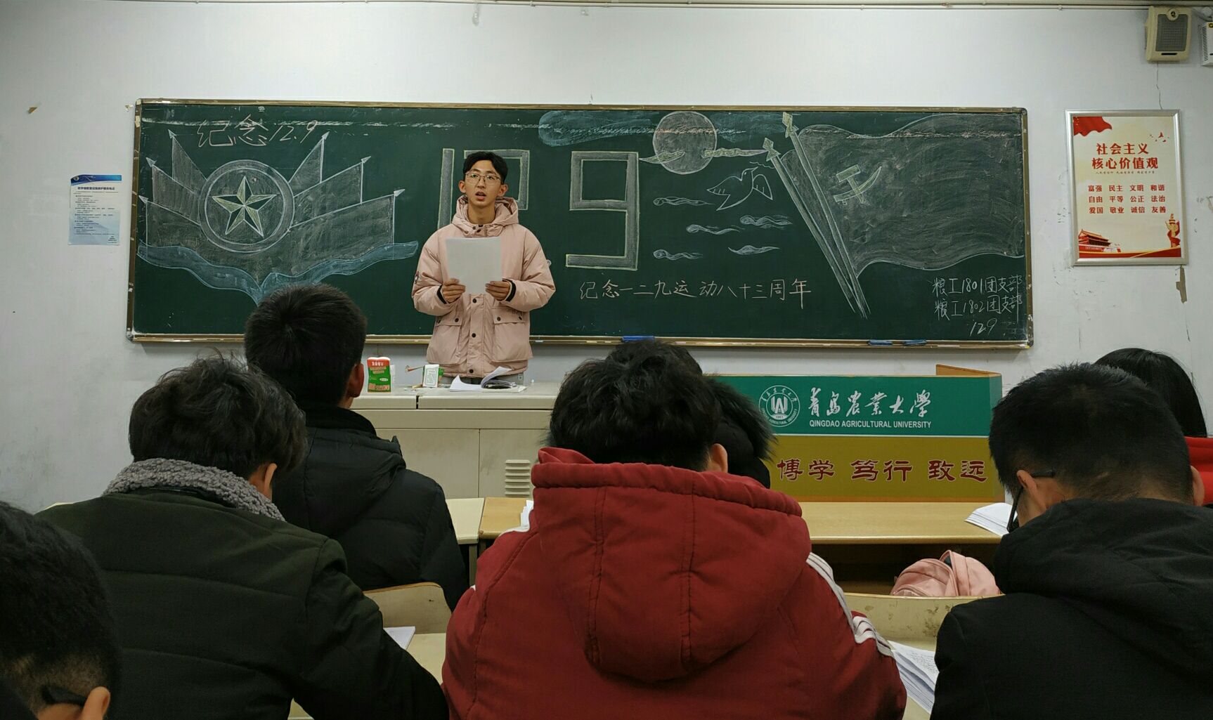 12月9日,青岛农业大学食品科学与工程学院在教学区开展“纪念一二九运动”主题政治学习。学院2017、2018级全体参与了此次学习。