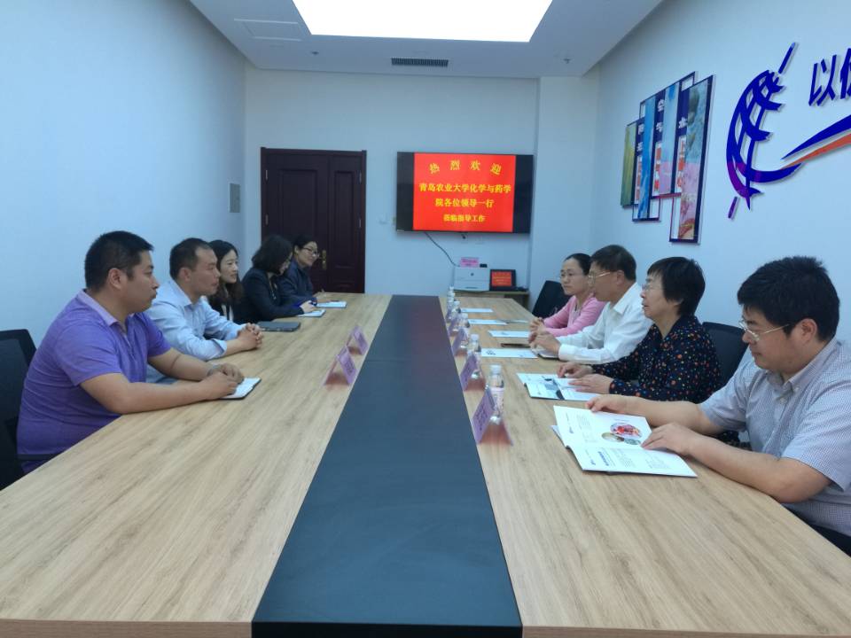 为深化专业建设,促进校企合作,实现产学研一体化,5月18日,青岛农业大学化学与药学院党委书记梁安波、院长曲宝涵、党委副书记史雪辉、团委书记王海霞、正科级辅导员田保玲一行5人,到青岛京诚检测科技有限公司走访调研。