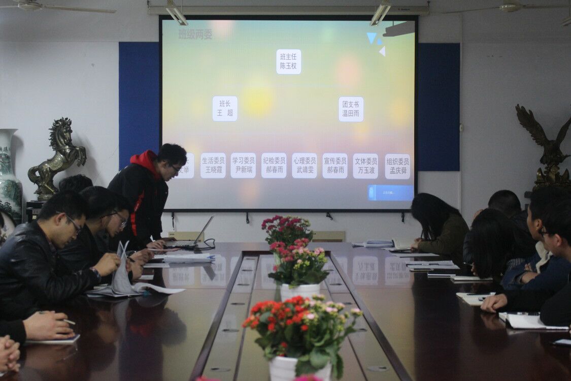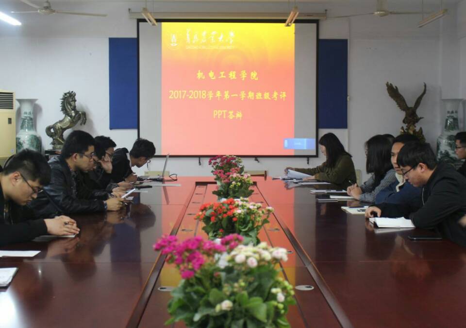 3月19日,机电工程学院在工程楼召开2017-2018学年第一学期班级考评PPT答辩会,辅导员安金鹏、张琳老师参加会议。