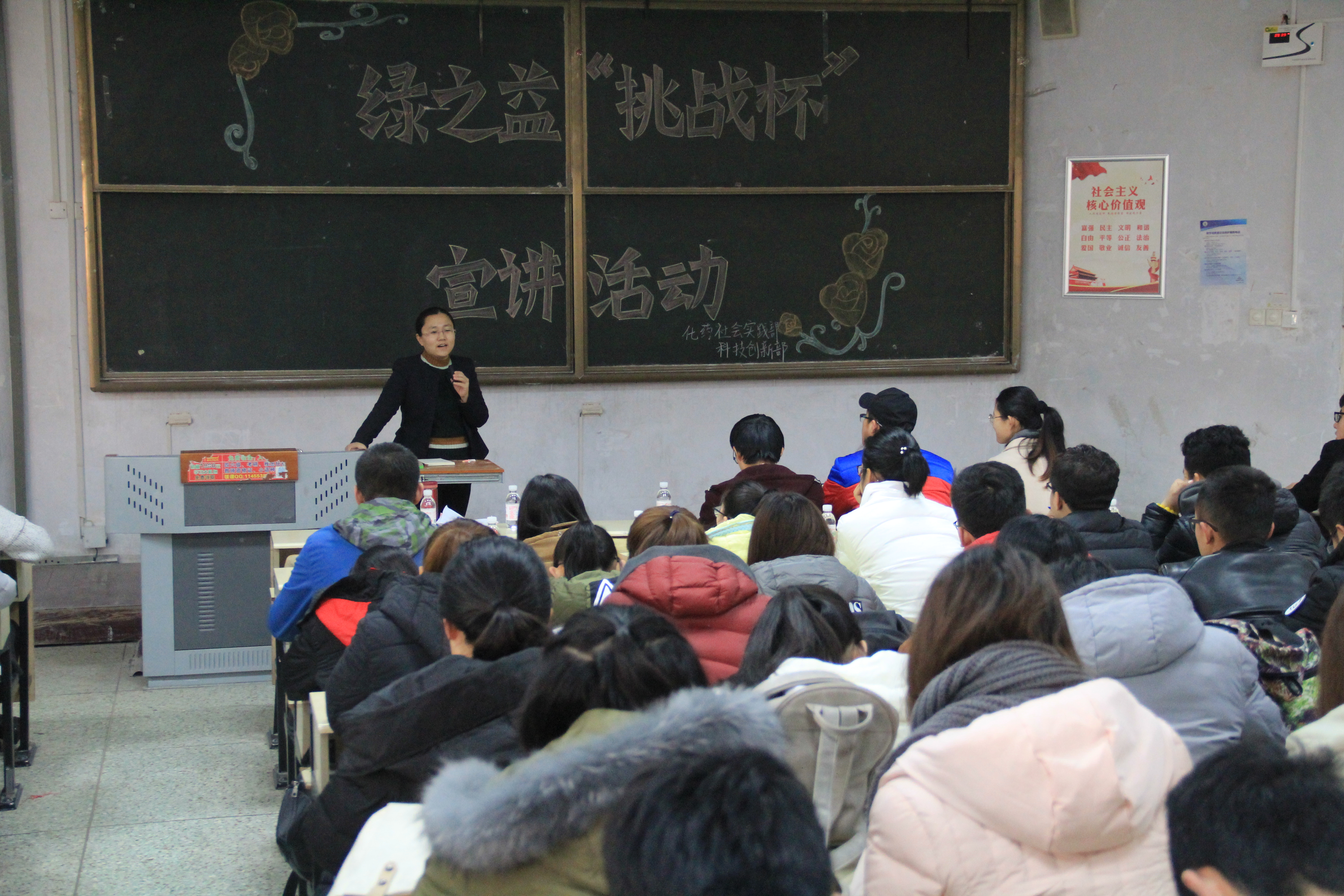 12月9日,青岛农业大学化学与药学院于教学区开展"挑战杯"宣讲活动,院团委书记王海霞出席,16级、17级学生部分学生到场。