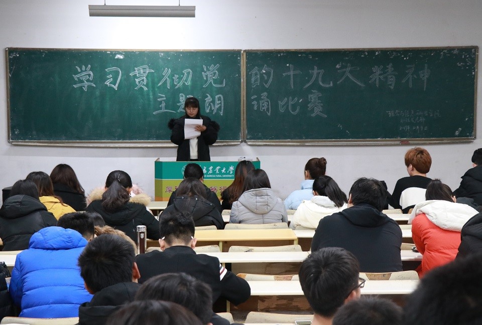 为了让同学们更加了解十九大精神,12月8日晚,理学与信息科学学院学生会心理发展部在教学楼举行了以“学习贯彻党的十九大精神”为主题的朗诵比赛。2017级部分同学参加了此次活动。