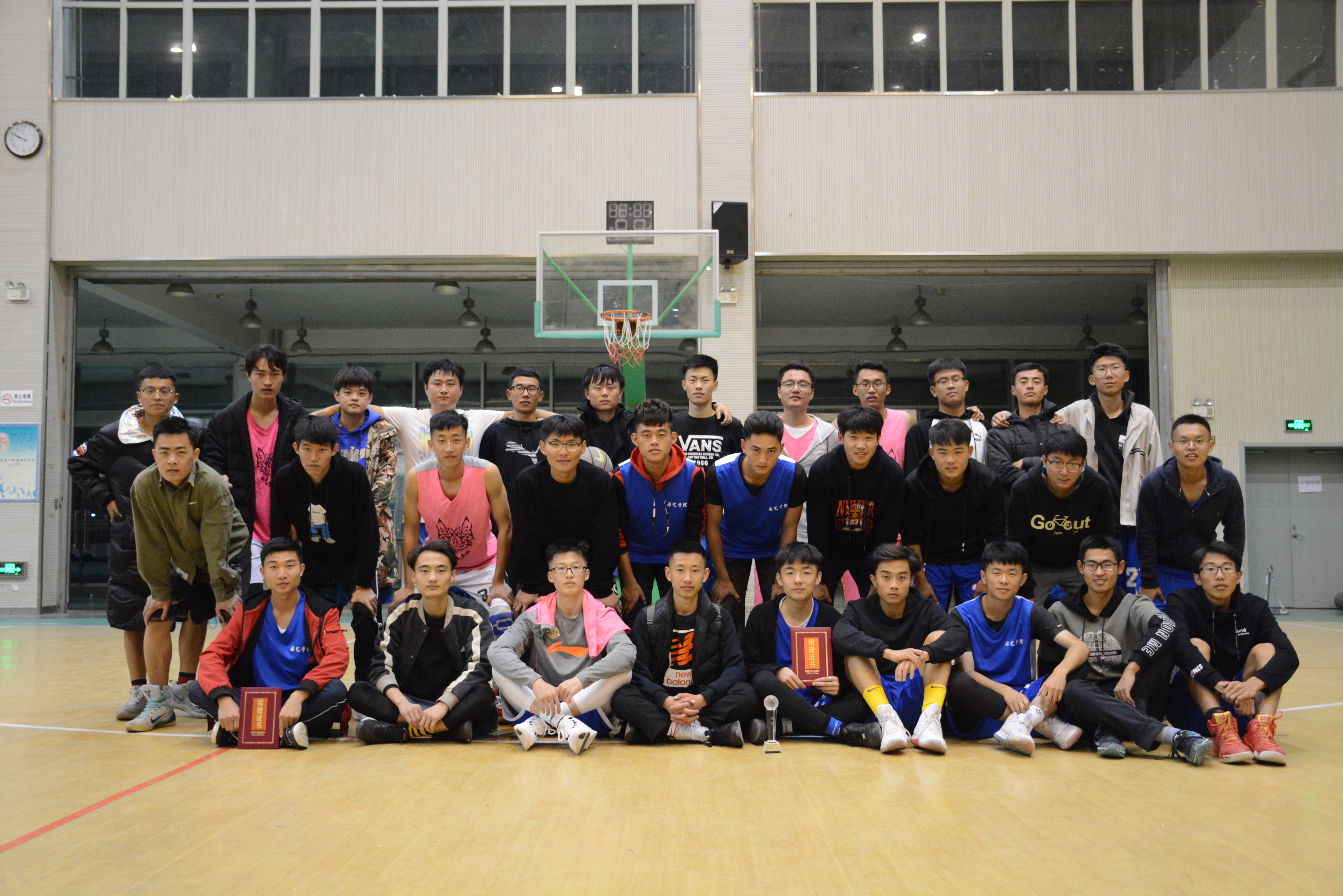 蓝队队员于鑫以一记三分球将现场气氛推向高潮,接连进球使队伍处于领先地位,现场观众呐喊助威,现场气氛十分活跃。最终经过激烈角逐,园艺学院“新生杯”篮球赛最终以园艺1601、园艺1803组成的蓝队取得胜利圆满结束。