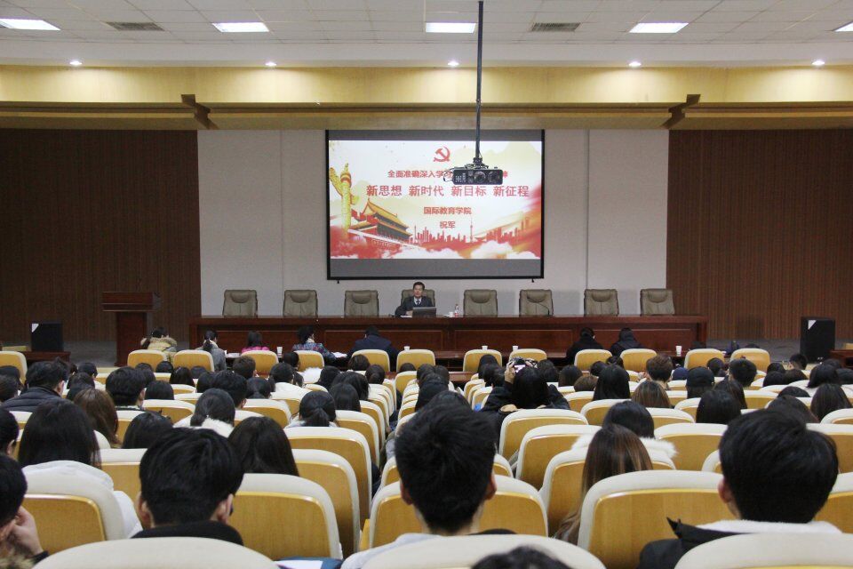 11月30日下午,国际教育学院于学术会馆第二报告厅举办十九大精神宣讲报告。国际教育学院党总支书记、院长祝军主讲,学院全体教职工及大一、大二学生聆听报告。