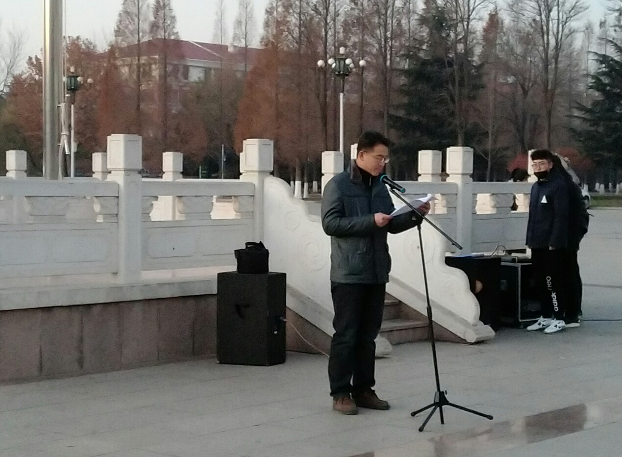 12月11日,青岛农业大学建筑工程学院在虹子广场举行升旗仪式。本次升旗仪式由学院团委书记刘园园主持,院党委副书记、副院长、学工办主任车广杰、辅导员林鑫、江守林以及学院全体学生参加了仪式。