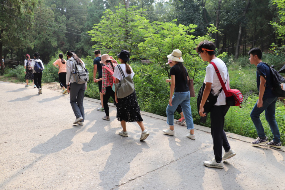 队员们大多并非泰安当地人,在实地调研的过程中经常有不便之处,所幸在7月20日当普照寺地区调研时队员们在上山途中遇见了一位本地的大爷。大爷非常热情,一路引领者队员们上山,沿途为队员们讲解山中植物与景观。比如,泰山上野葡萄和葎叶蛇葡萄的不同。葎叶蛇葡萄有一定毒性,但是野葡萄的用处广泛,当地人一般采摘野葡萄,将其晒干,泡水服用,可治筋骨伤痛,慢性关节炎等。