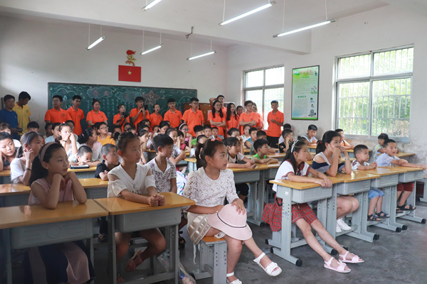 孩子们陆陆续续地抵达凫城镇中心小学。在社会实践队员的带领下,他们井然有序地坐满了教室。孩子们满怀着新奇与激动的心情看着眼前陌生却又和蔼可亲的哥哥姐姐们,脸上洋溢着期待。队员们主动地和孩子们交流沟通,气氛逐渐融洽起来。