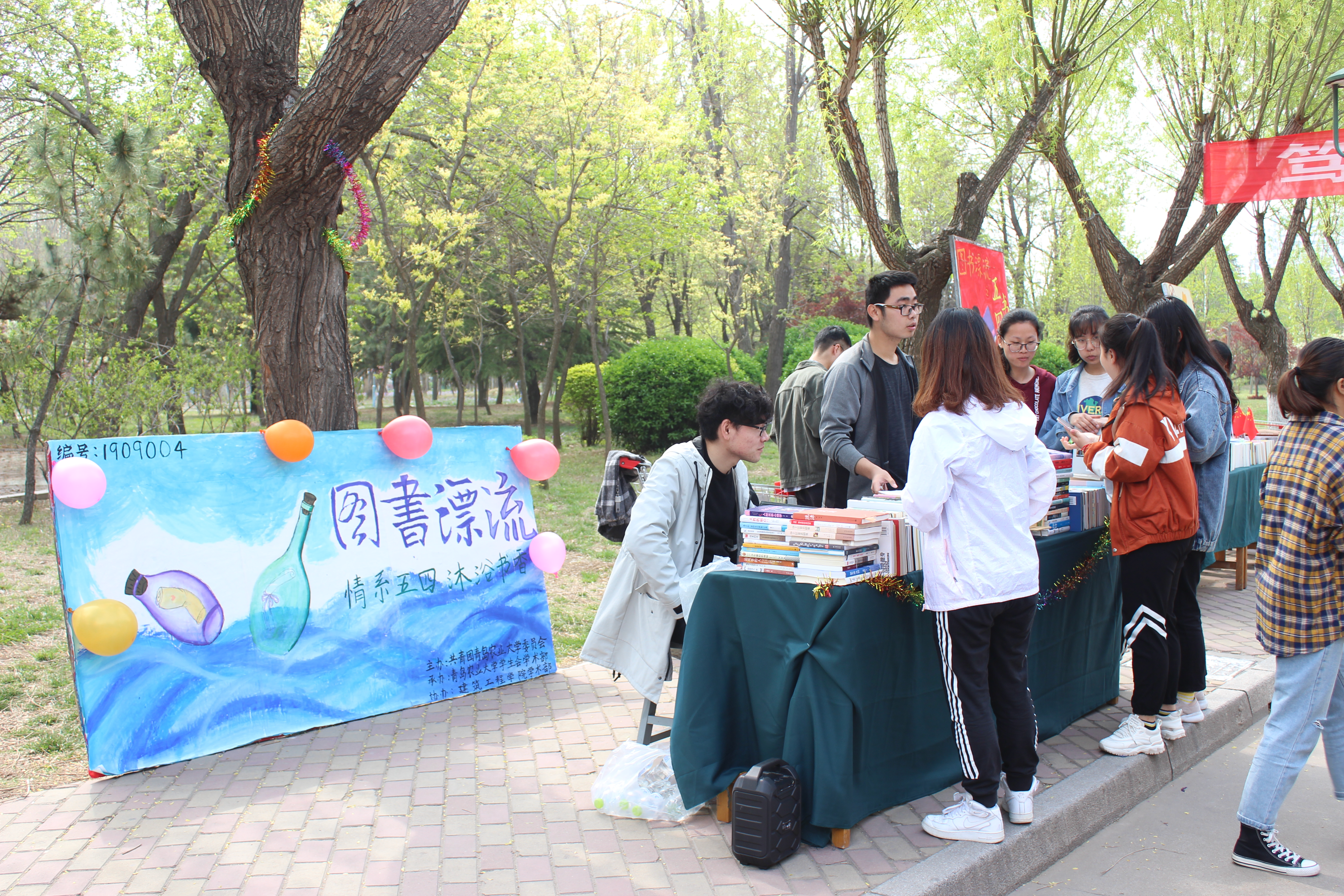 4月21日,青岛农业大学建筑工程学院参加“五四展青春,书香伴我行”图书漂流活动。本次读书漂流活动,建筑工程学院以“情系五四 沐浴书香”为主题,于毓秀路设立图书漂流点,图书涵盖《红岩》、《星星之火》等红色书籍,引导青年大学生共同了解红色故事,了解历史。学生积极互动参与借阅,充分浏览各类图书,现场气氛活跃。