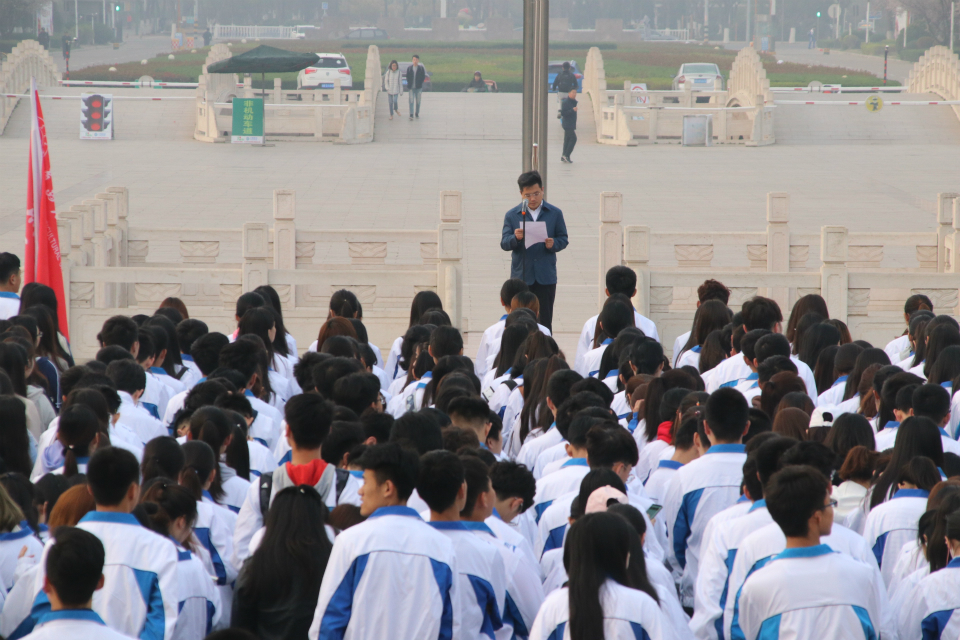 迎着朝阳,国旗护卫队迈着整齐划一的步伐,将鲜艳的五星红旗护送至升旗台,伴着庄严的国歌,五星红旗冉冉升起,随风飘扬。全体师生行注目礼,仰望五星红旗在晨光中高高飘扬。升旗结束后,张德锋在国旗下做“不忘初心多磨砺,不负青春展芳华”主题讲话。他号召同学们每个人一是要做到诚信善良,用心做人,人无信则不立,学会做人是值得毕生学习的大学问;二是要惜时如金,奋发有为,珍惜人生中的大好时光,多学习,多思考,多实践,多提高,真正做到不负青春;最后,他勉励大家生活中积极乐观,永葆一颗进取之心,用不懈的努力和奋斗的乐趣去体验生活乐趣,感悟人生真谛。