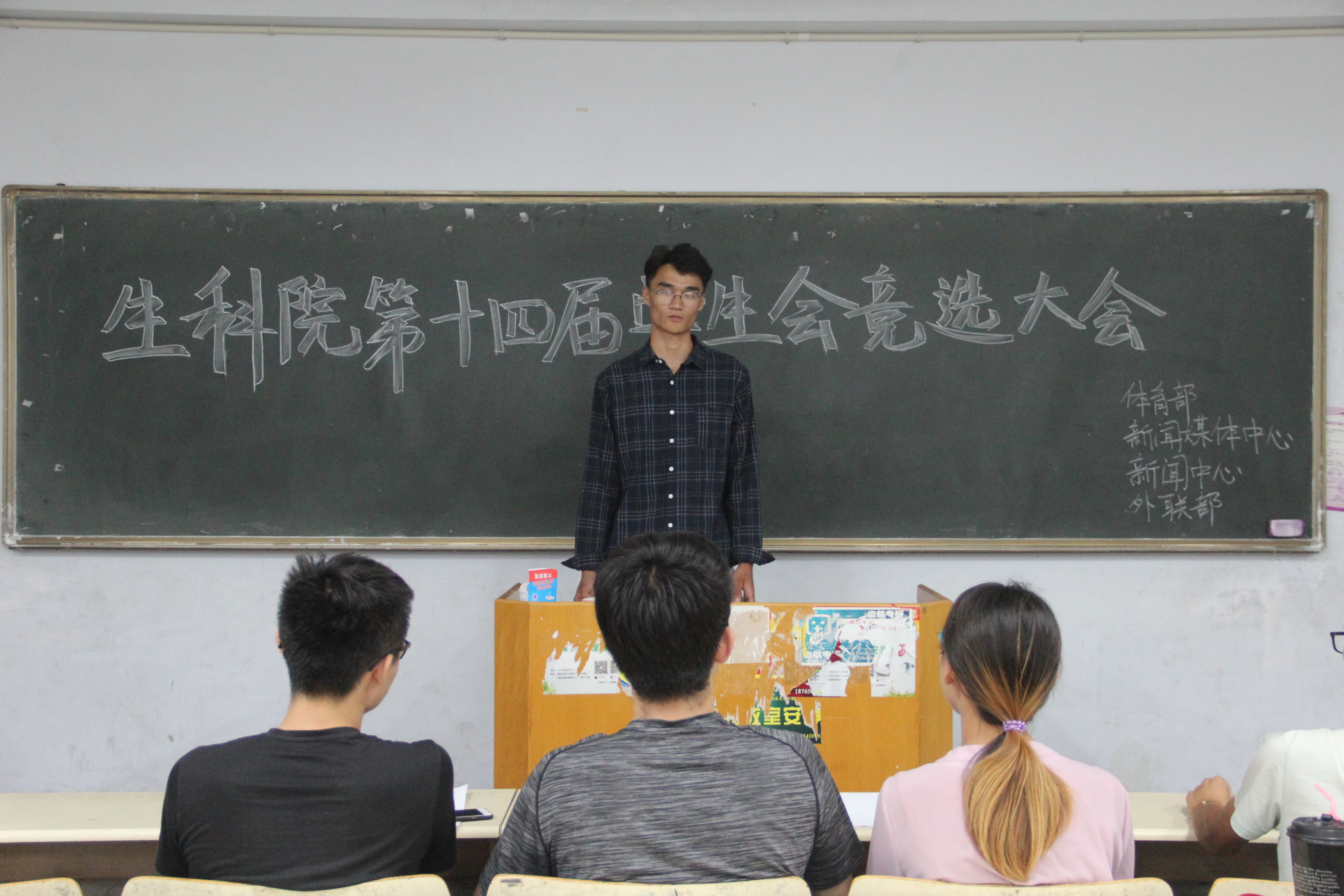 9月22日,生命科学学院在教学区举行第14届学生会竞选大会,通过竞选产各部副部人选。14届学生会主席夏国祯及学生会各部长主持此次竞选,16级部分同学参加。。