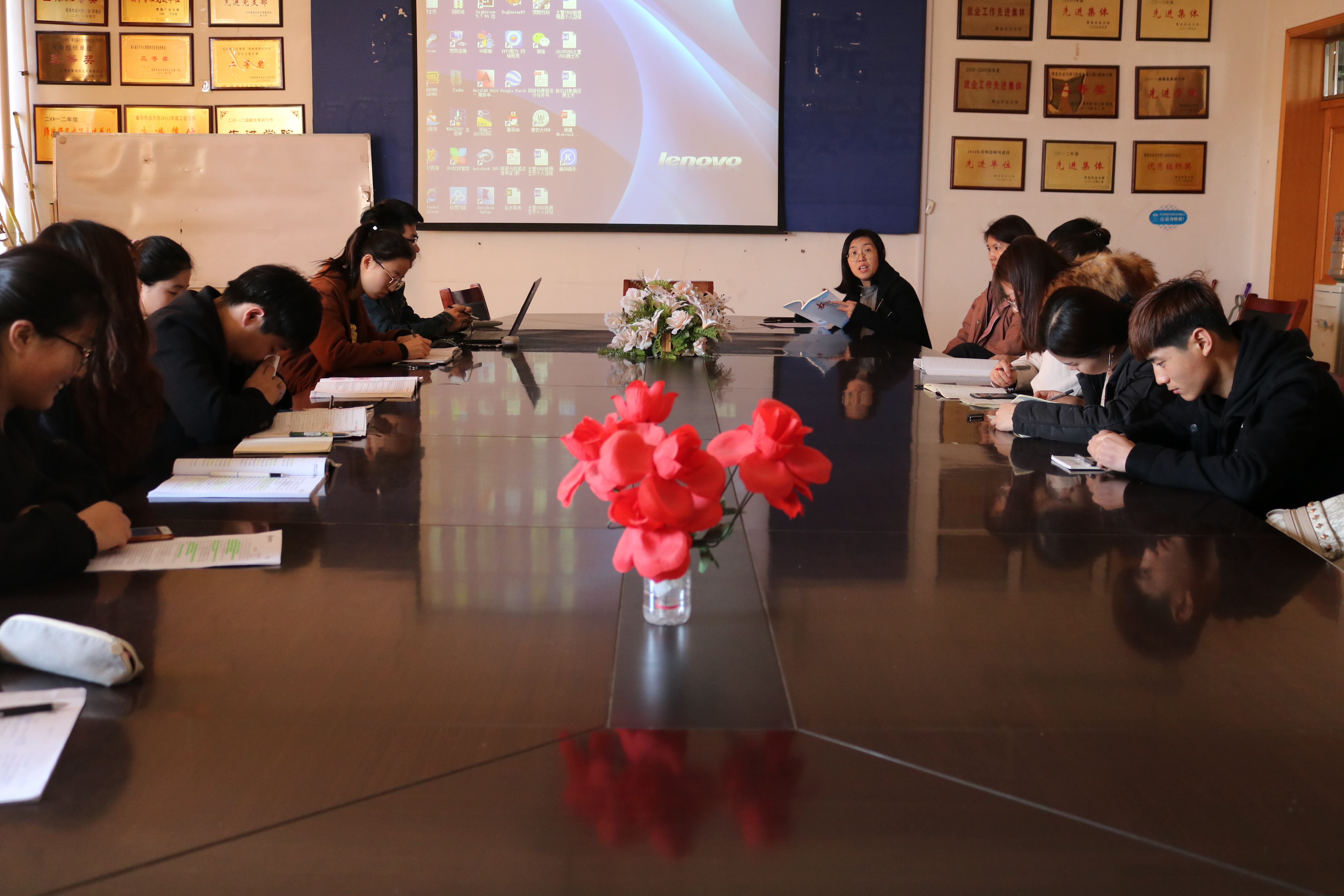 会上,刘春玲带领大家共同学习了《新时代面对面》中的第十一部分—“绿水青山共为邻——如何建设美丽中国”,并结合学院学科专业进行了重点解读。刘春玲谈到:“生态兴则文明兴,生态衰则文明衰,作为资环学子,要积极了解国家的生态环境问题,发挥学科优势,促进生态文明建设,作为学生党员更应该率先垂范。”