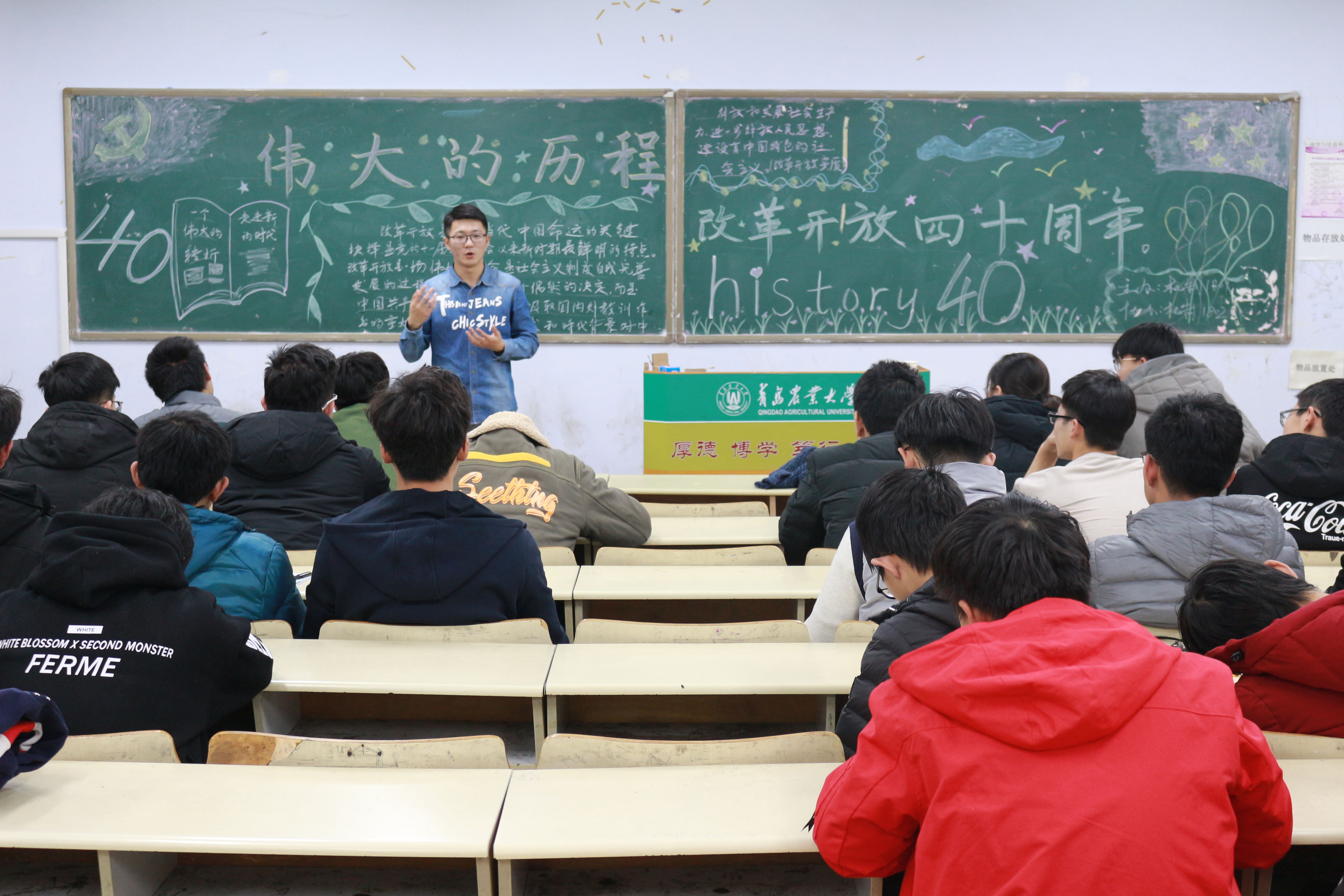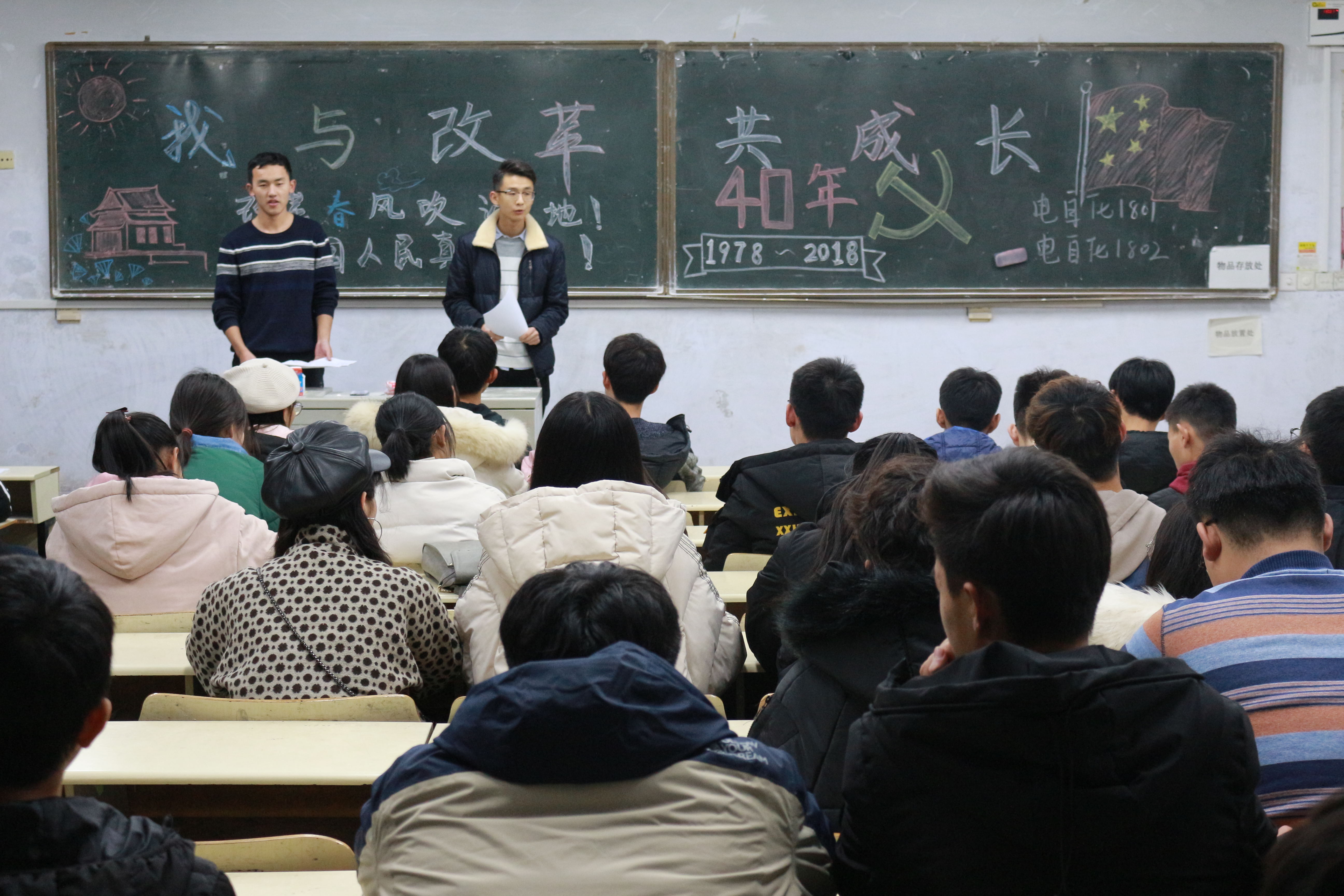 各班组织同学们重点学习习近平总书记在庆祝改革开放40周年大会上的重要讲话,老师们结合自己的亲身经历,对改革开放以来国家、学校以及教育等的变化进行了叙述,用自己身边发生的变化与同学们共同感受改革开放40年祖国发展的巨大变化,增进了学生对改革开放进程的了解。各班级还采用了观看视频、辩论赛和知识抢答等多种形式进行,丰富了学习载体,增强了政治学习的吸引力。