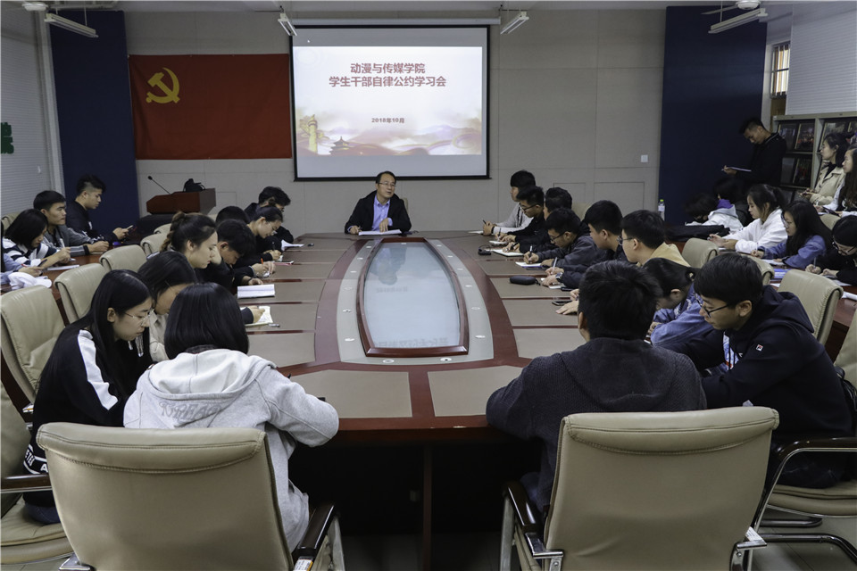 培养一支干净、纯粹、正气、朝气蓬勃、为同学服务的学生干部队伍,打造风清气正的学生组织氛围,是新时期加强学生干部作风建设的新要求、新任务,也是我们义不容辞的责任。10月17日,动漫与传媒学院团委在学院会议室召开学生干部作风自查和自律公约学习会,会议由学院团委书记王宏儒主持,学工办老师以及学生会、班级主要学生干部到场参加。