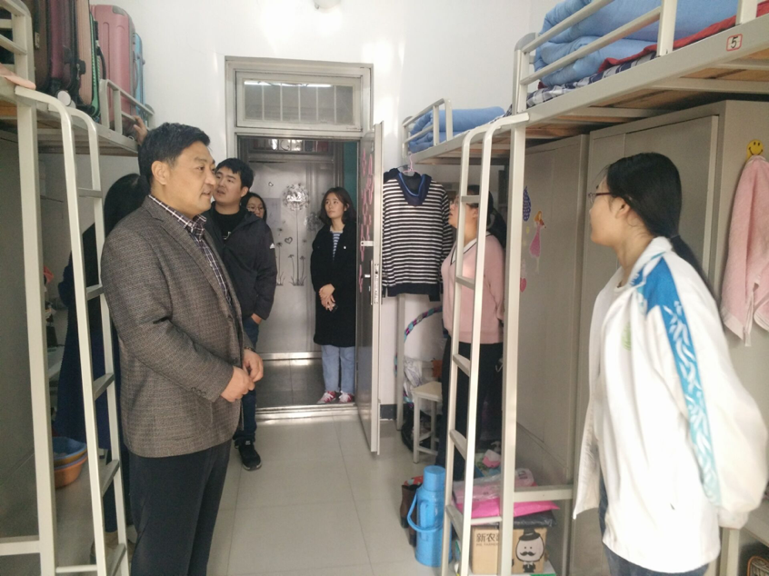 为检查宿舍内务卫生情况,排查消防安全隐患。11月7日,院党委书记唐传成,副书记、学工办主任焦磊、团委书记贾永超及辅导员老师走访我院学生宿舍。