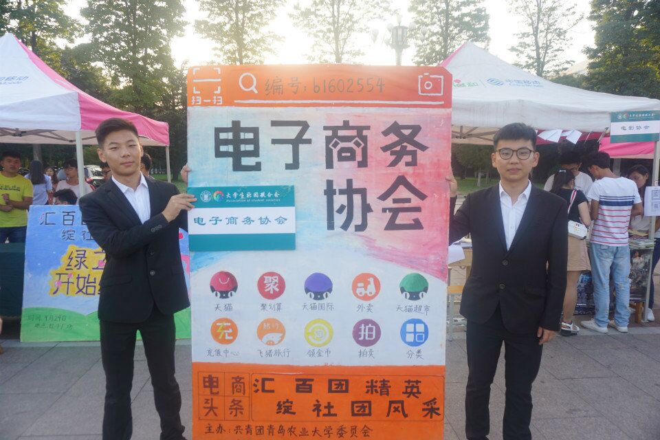 9月24日,一年一度的青岛农业大学社团纳新活动在虹子广场正式拉开帷幕。经济学院(合作社学院)下属的金融证券协会和电子商务协会积极参与其中,他们通过宣传展板、口头宣传等方式吸引了广大青农学子的加入。