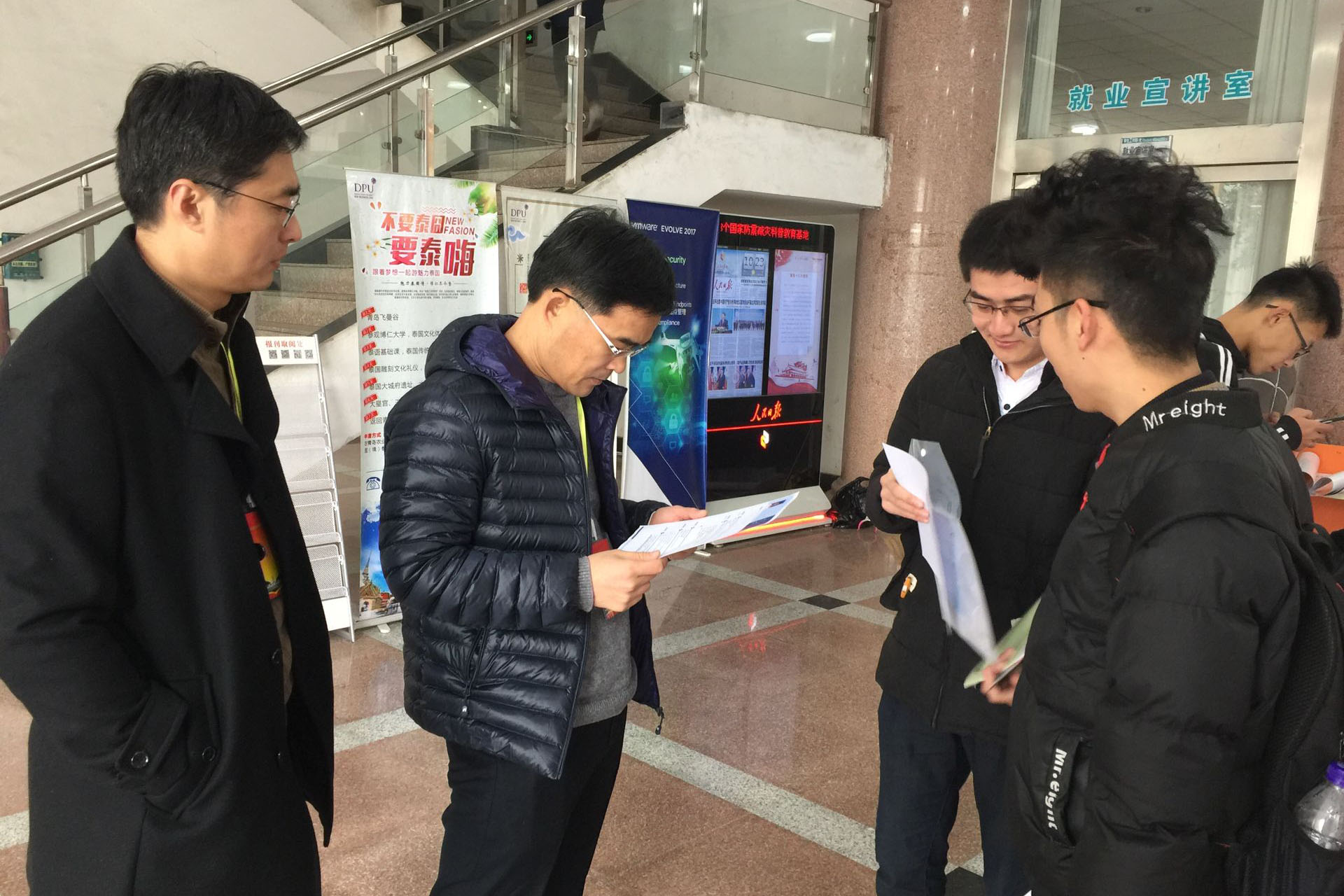 12月2日,青岛农业大学2018届毕业生冬季大型供需见面会于教学区、图书馆、文经楼及文体馆同步举行。理学与信息科学学院党委书记杨凯,党委副书记、副院长岳斌,团委书记孙杰亲临招聘会现场了解供需见面会情况,为毕业生就业把关。