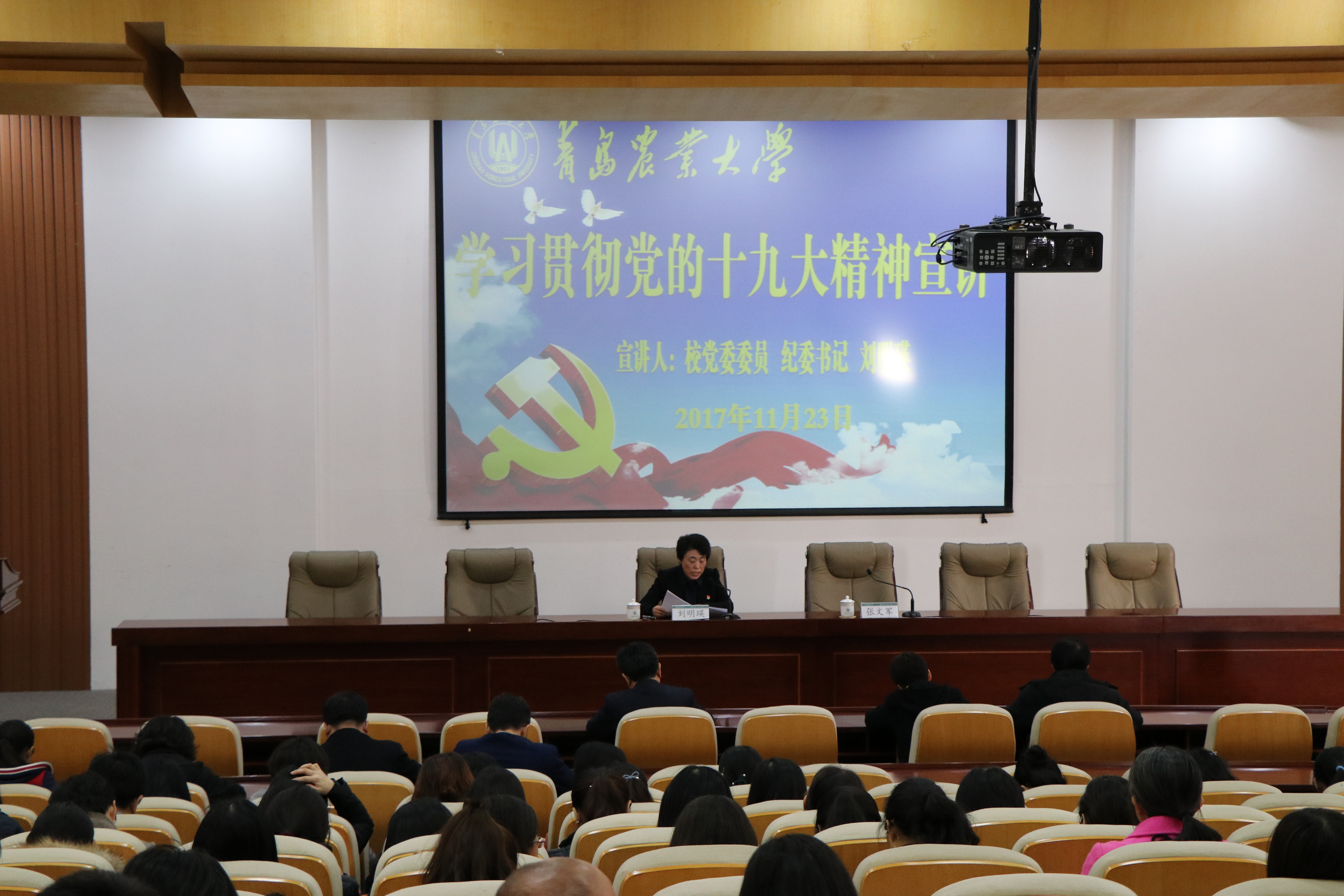 11月23日,青岛农业大学校党委委员、纪委书记刘眀瑛于学术会馆开展党的十九大精神宣讲会议,建工学院全体教师参加会议并认真聆听了报告。