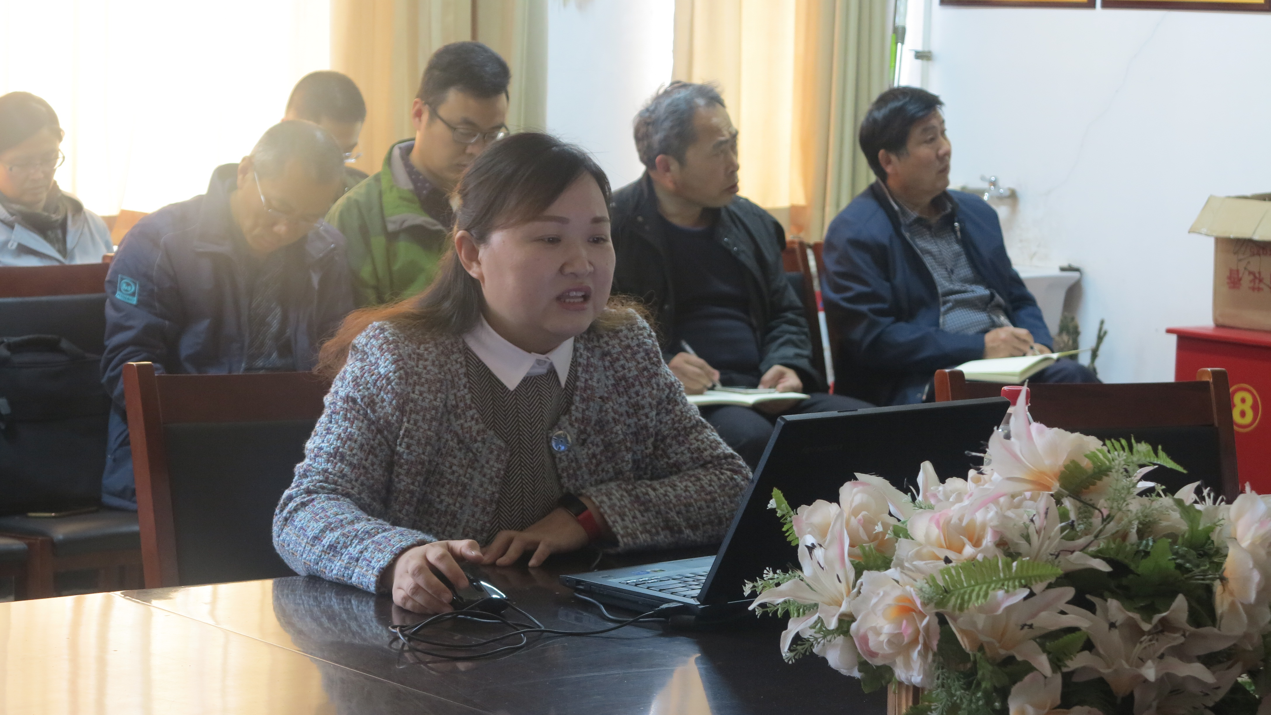 聘请专家辅导。11月9日下午,学院邀请马克思主义学院教师、校党的十九大精神宣讲团成员刘霞做题为《历史性成就与历史性变革—学习领会党的十九大精神》辅导报告。刘霞从党的十九次全国代表大会简介,十八届一中全会到七中全会重点回顾,学习领会十九大报告内容精神,做合格党员、不忘初心、永远跟党走四个方面带领全体教职工进行讲解。通过辅导报告,教职工加深了对党的十九大提出的系列新思想、新观点、新论断的理解。