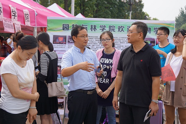 9月2日,园林与林学院迎新接待处热闹非凡,校长宋希云,校党委副书记王庆军,副校长牟少岩、刘春霞等校领导先后莅临现场指导迎新工作。