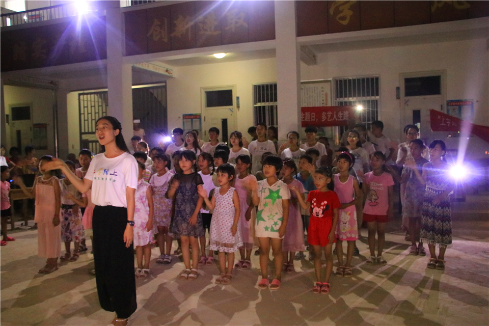 为鼓励孩子学以致用,支教活动结束之际,团队举办了文艺演出。傍晚,家长们陆续来到现场,孩子们利用课上所学,表演了中华武术、《师生情》朗诵和《稻香》杯子歌等精彩节目。“黑黑的天空低垂,亮亮的繁星相随”舞台上,孩子们跟随志愿者的双手,一起在灯光下舞动。台下,刚学会走路的娃娃也挥手咧嘴笑......结束时,队长齐文颂总结道:“此次支教,我们通过丰富的课程主题,传授给孩子们知识,为孩子们铺就多才多艺的人生道路。孩子们要谨记‘知识改变命运,文化传承自信’,愿孩子们能够脚踏实地走下去。”