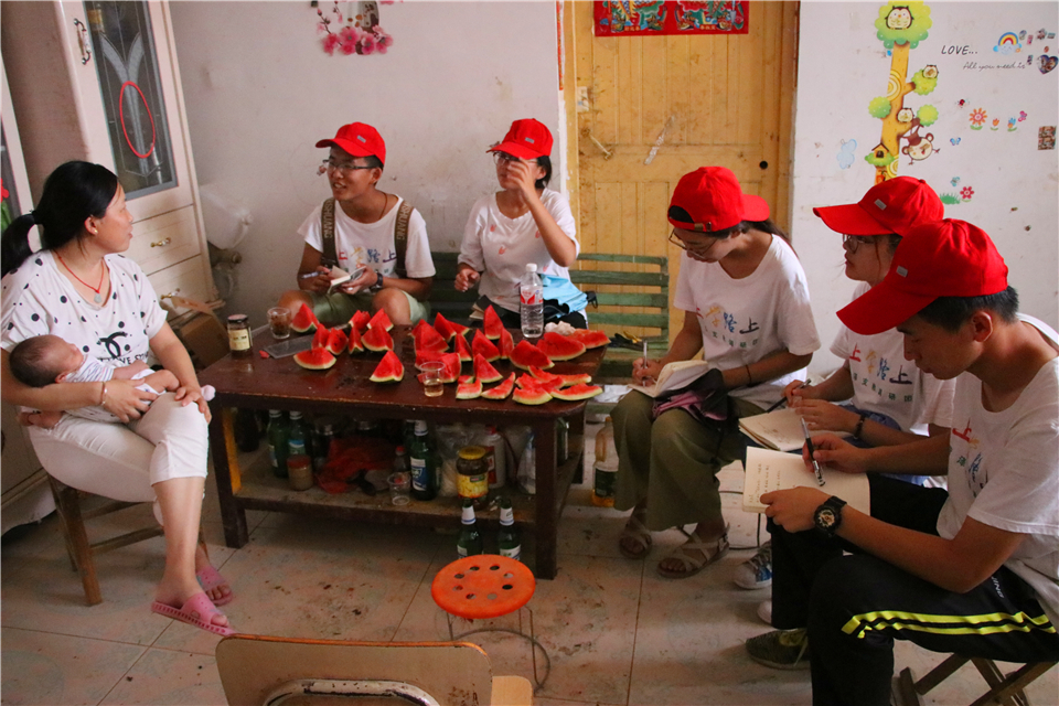 支教结束后,团队便开始进行家访。在热心路人的指引下,志愿者们来到了刘涵杰的家并见到了他的母亲,“阿姨,您的孩子在校很懂事,但课堂上不是很活跃,他在家里也这样安静吗?”刘文旭说道。听了志愿者的话语,孩子的妈妈笑道:“我的孩子在家里挺调皮的,没想到在学校是这样一个形象,他在家经常帮我们洗碗、拖地的。”在交谈中,志愿者向家长介绍了孩子在校表现并询问了孩子生活及性格。从刘涵杰家长口中,志愿者了解到去年春蕾队员来此支教,部分家长对孩子上学的错误观念已改变,但仍有少数家庭认为打工挣钱才正确,因当地条件限制,孩子并不能很好的成长。在回访中,团队还向学生家长分发知识宣传手册,且将文字简易化以便他们理解,让家长及孩子们进一步认识到知识改变命运的重要性。