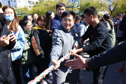 本次趣味运动会项目包括宿舍知识竞答、快速叠被子、海底捞月和无敌风火轮等。文艺精灵们的开场劲舞调动了冷风中的每一个人。在“大家来找茬宿舍知识竞答”环节,同学们在有限的时间里紧张地埋头做题,为接力的选手争取时间。接力的同学与老师相互配合,开始叠被子比赛,气氛紧张激烈。精彩的团体赛项目"海底捞月"和"无敌风火轮",考验个人注意力和团队协作能力,在热烈的加油声中,选手们配合默契,手脚飞快的移动,成为体育场上一道亮丽的风景线。在师生联谊拔河赛中,大家共同努力,咬紧牙关,劲往一处使,为了体育比赛精神,为了集体的荣誉而战。趣味运动会项目中不仅有激烈的体能比拼,还有对耐心和恒心的考验。骑慢车比赛和筷子夹球比赛考验着大家的毅力和韧劲,还有克服困难的决心。