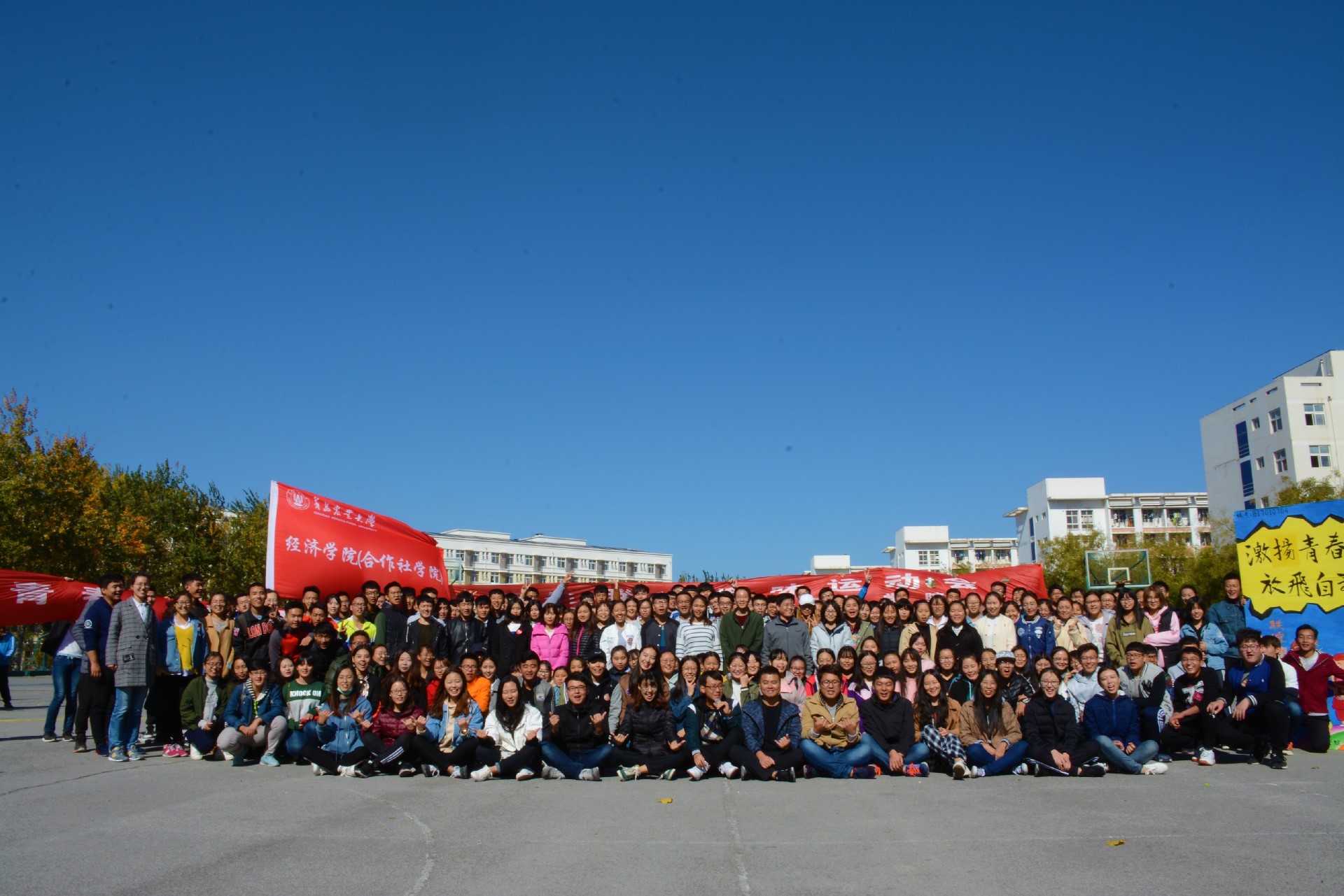 比赛结束后,师生合影留念,为趣味运动会的欢声笑语画上圆满句号。本次趣味运动会旨在贯彻落实十九大精神,推进体育强国建设,同时进一步丰富了同学们的大学生活,提升了 凝聚力和向心力,促进和谐,振奋精神,展示了经合学子积极向上的精神风貌和锐意进取的拼搏精神。