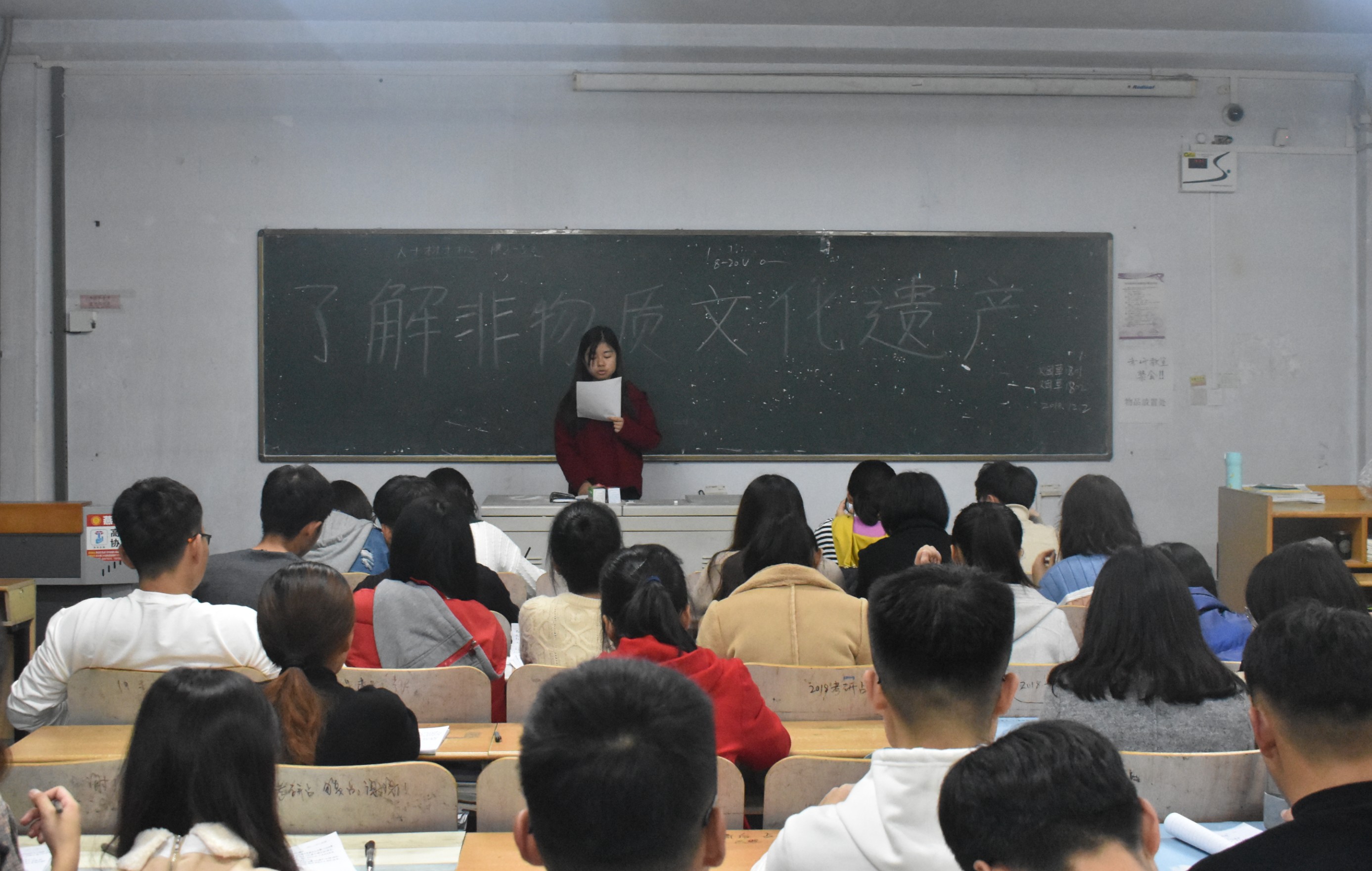 12月2日,青岛农业大学农学院于教学区开展了解非物质文化遗产主题团课,旨在提高学生对非物质文化遗产的认知,并加深广大学生对中华民族非物质文化的保护意识。农学院2017、2018级全体同学积极参与。