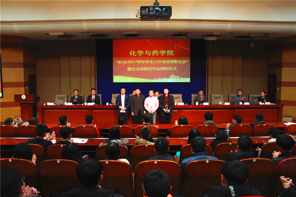 12月8日,青岛农业大学化学与药学院2016―2017学年学生工作总结表彰大会暨企业奖教奖学金颁奖仪式于校学术会馆第一报告厅举行,青岛农业大学校团委书记王峰、校党委学工部(处)副部长王国辉、青岛瀚生生物科技股份有限公司董事会秘书褚维约、山东德州神牛药业有限公司副总经理肖建森、青岛和和语言培训有限公司董事长化学与药学院材料化学2009级校友李永泉及学院党政领导出席会议,会议由学院党委副书记史雪辉主持。