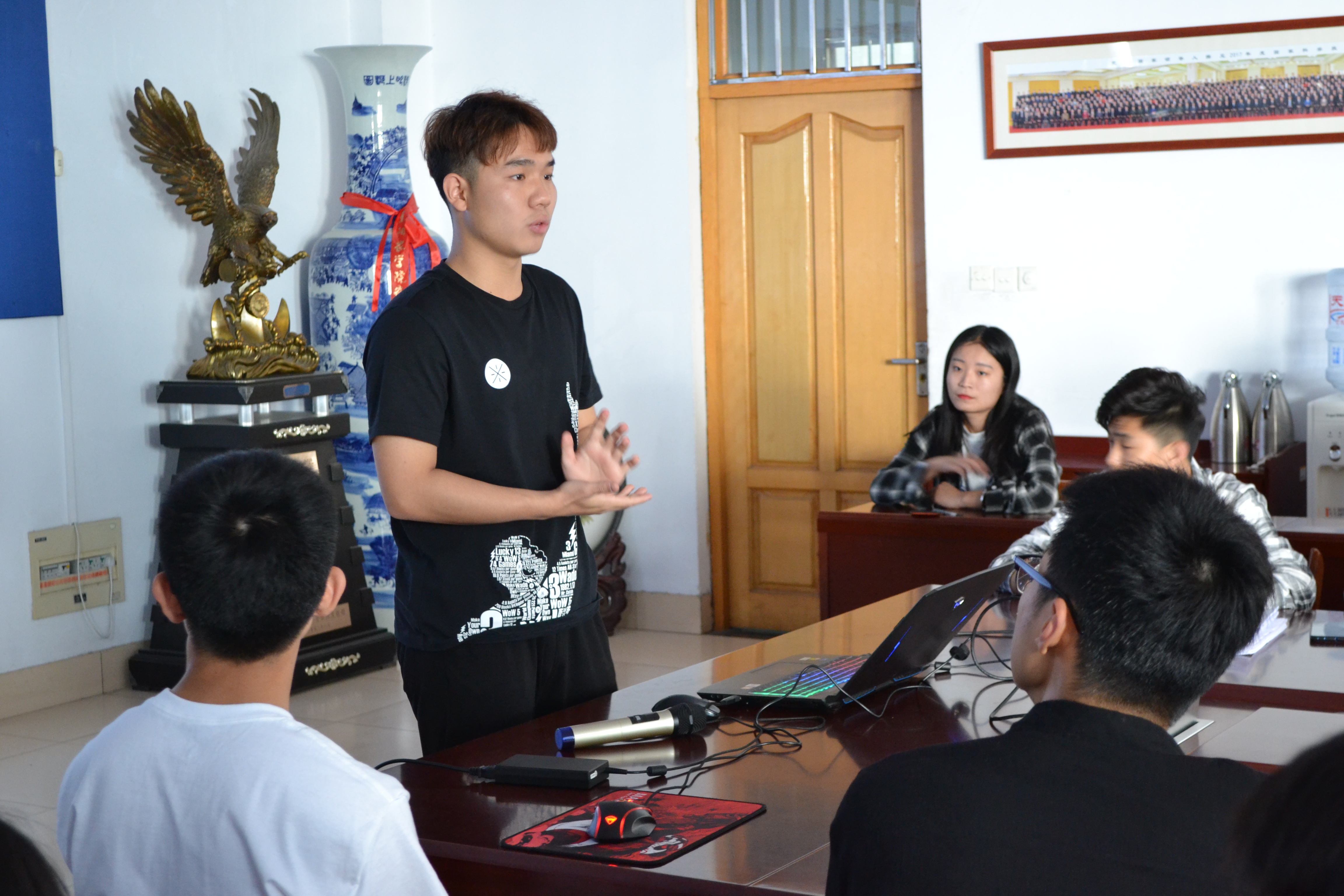 各位团队负责人首先进行了创业PPT展示,从项目内容、项目方案和公司结构等方面介绍了各自的项目概况,从人员设置、财务管理等方面介绍了公司的大体框架。在提问环节,评委们对PPT的内容提出了问题与建议,各负责人对其做出了针对性的回答与修改。最后,“ZLLZ ”和“欢乐家族”团队获得一等奖。