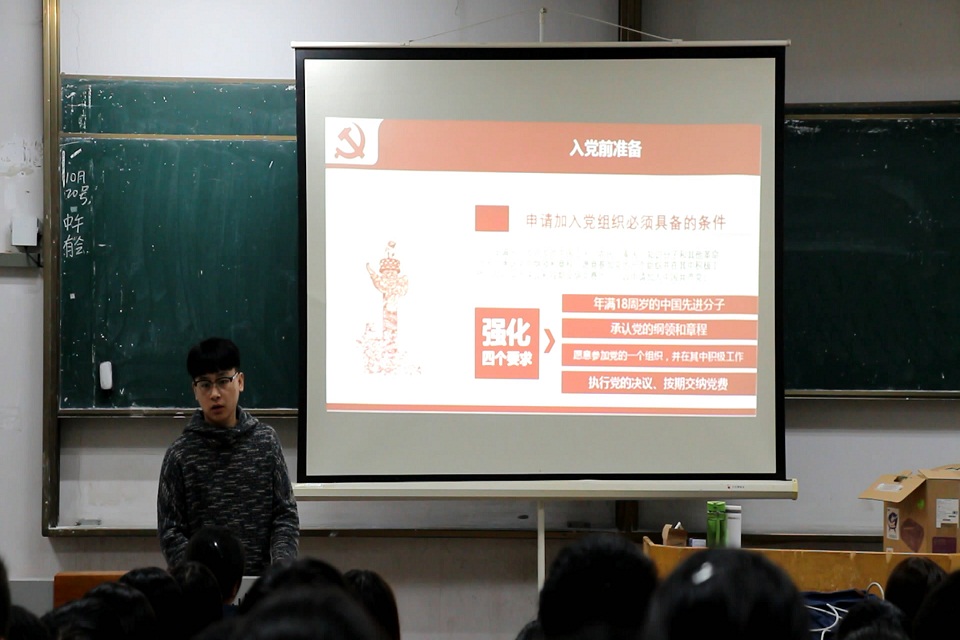 杜立言从“我为什么要申请入党”讲起,主要从入党申请人为什么要递交入党申请书、入党申请书基本写作要求 、入党基本程序等方面进行了细致的讲解。杜立言和团员同学分享了自己的入党经历,并向同学们讲述自己如何在党组织的培养教育下思想素质一步步提升,他呼吁全体团员青年承担起大学生应承担的责任,以实际行动向党组织靠拢。