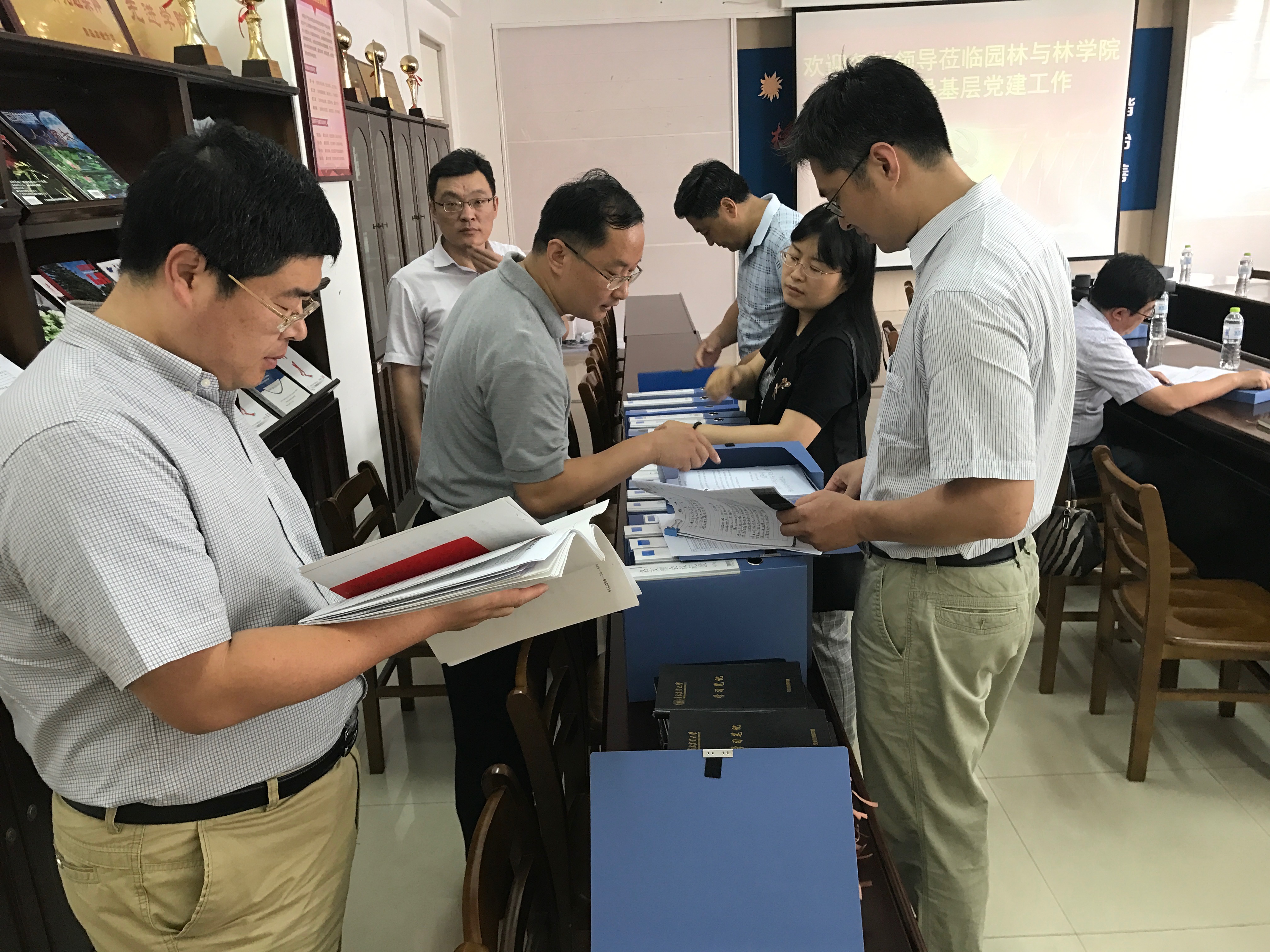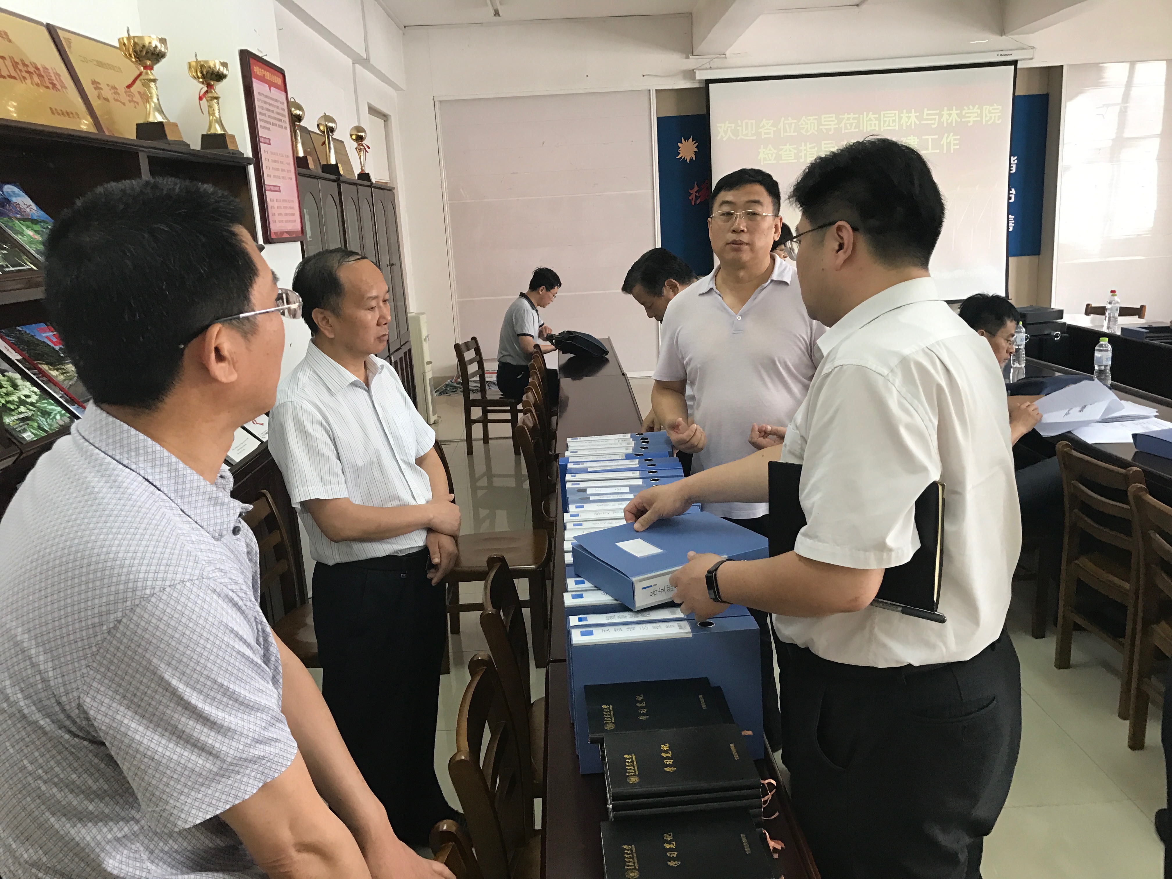 由校党委副书记王庆军、纪委书记刘明瑛和副校长刘春霞分别带队的观摩团成员分三批现场翻阅了解了学院各项基层党建材料,并对教职工理论学习笔记等亮点工作给与了高度评价。