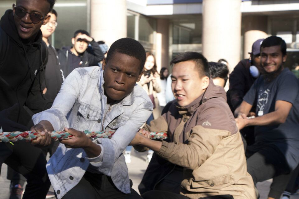 10月27日,青岛农业大学国际教育学院于文经楼前举行中外学生拔河比赛, 17、18级中国学生和国际生参加。该活动由院学生会体育部主办。