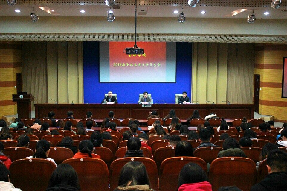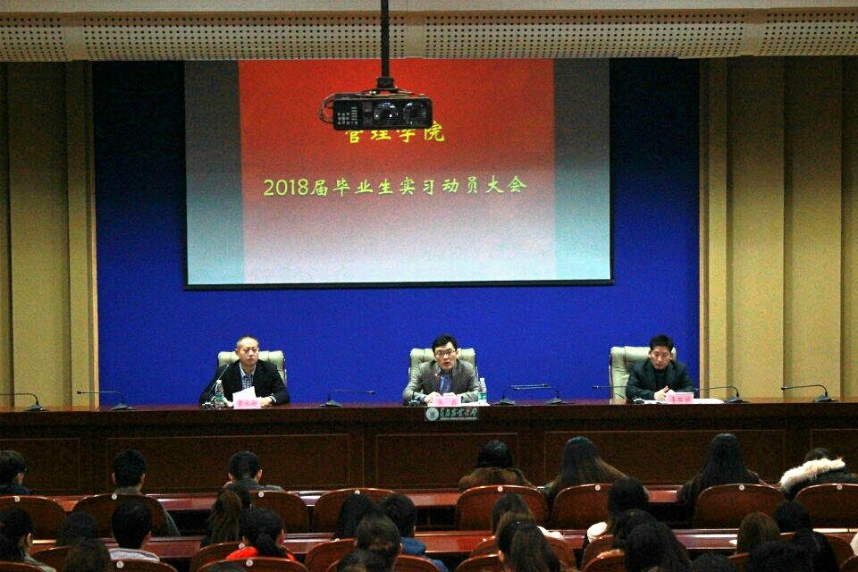11月20日,管理学院于学术会馆第一、二报告厅召开2018届毕业生实习动员大会。学院副院长李敬锁、党委副书记焦磊出席了此次大会,会议由团委书记贾永超主持,2018届全体毕业生参加。