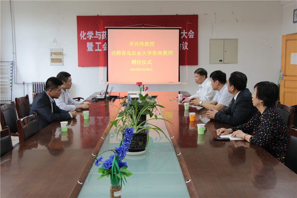 5月26日,大连化学物理研究所工作研究员、博士生导师李兴伟受聘为青岛农业大学客座教授,聘请仪式于化学与药学院会议室举行。校党委副书记王庆军、人事处处长周顺、化药学院党政领导及学院部分教师代表出席聘任仪式。