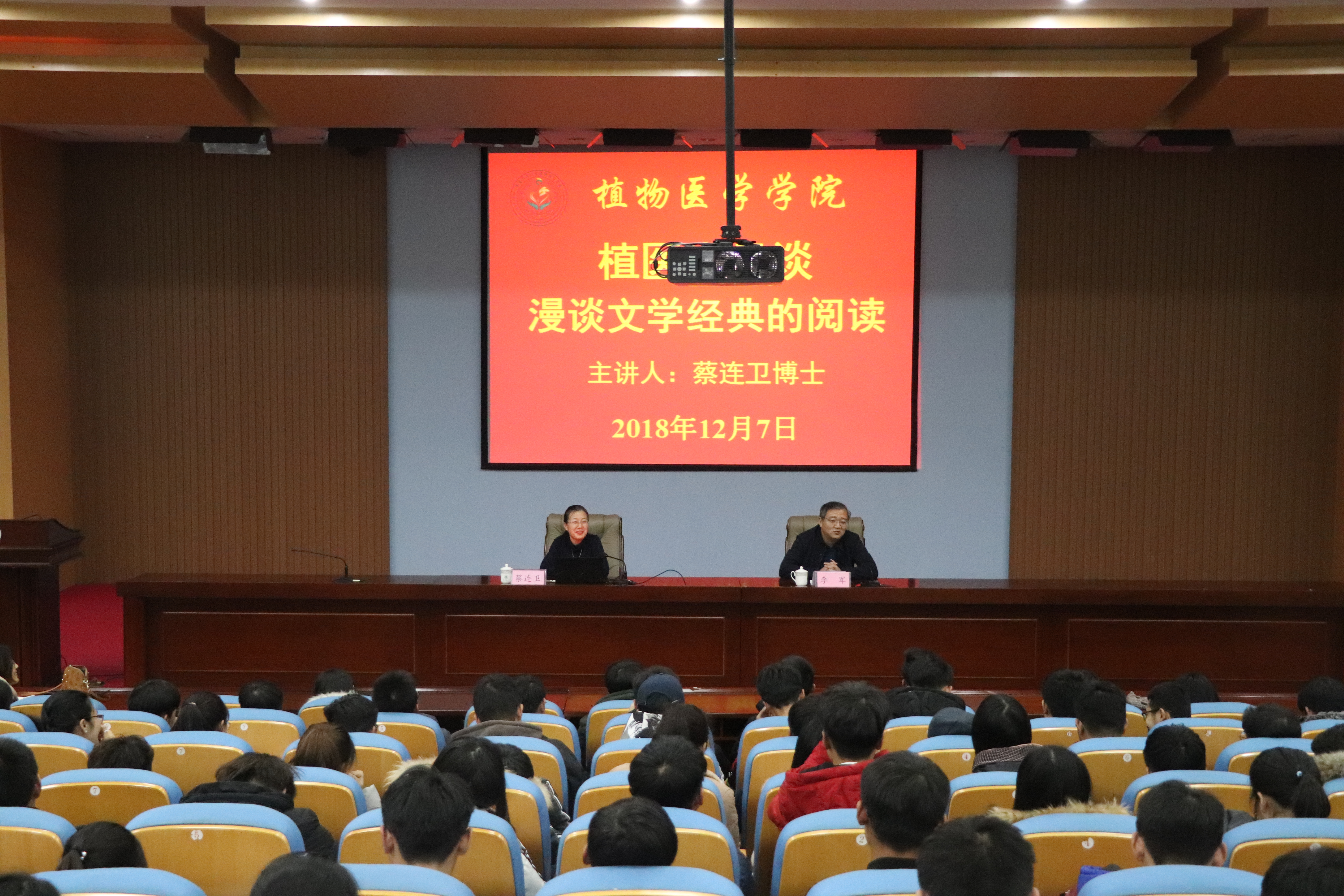 12月7日,植物医学学院“植医半月谈”第四讲在学术会馆举行,本次邀请人文社科学院蔡连卫博士主讲。学院团委书记马伟萍,2016、2017级学生代表和2018级全体同学到场聆听,会议由学院党总支副书记、副院长李军主持。