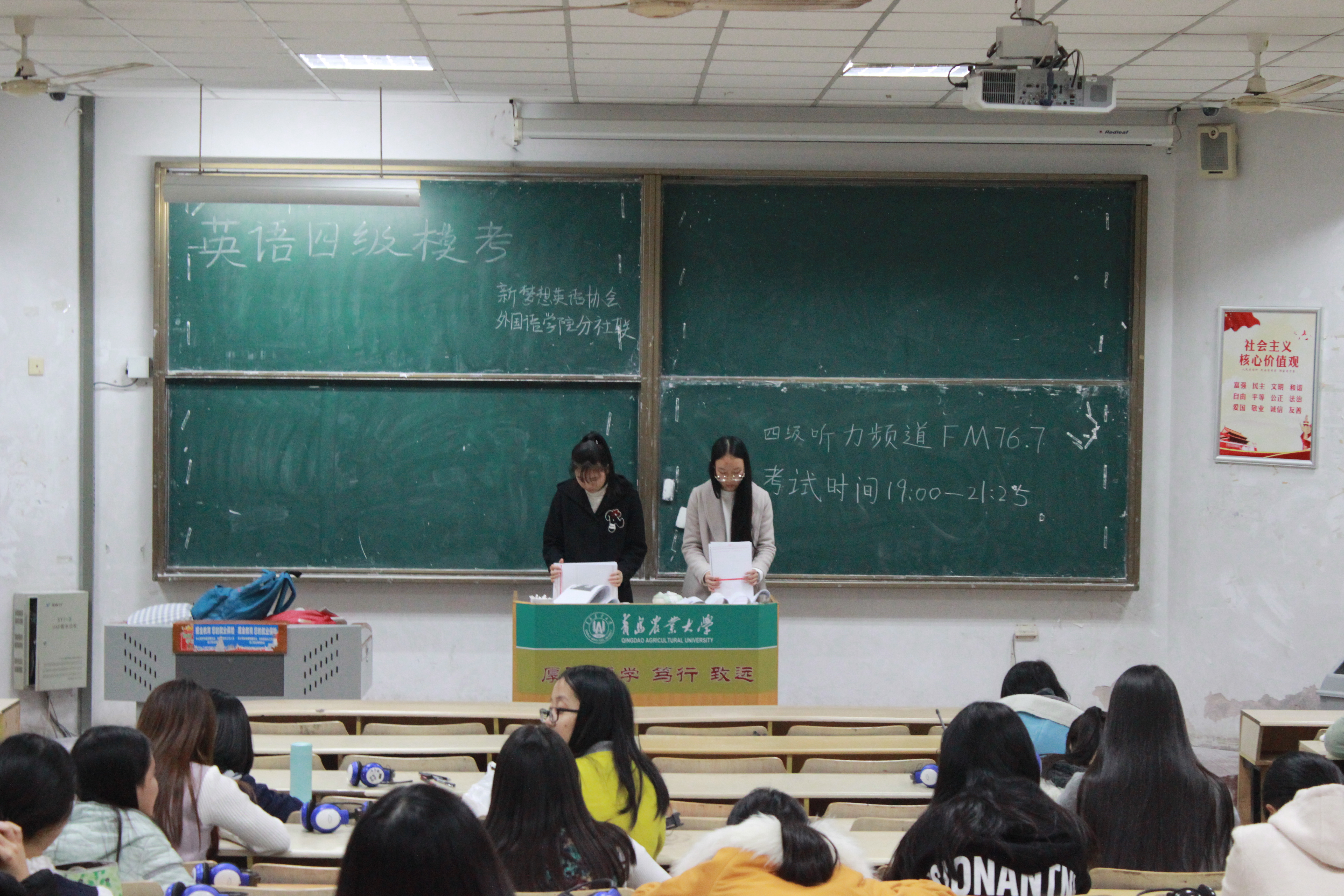 11月25日,青岛农业大学外国语学院新梦想英语协会于教学区组织英语四六级模拟考试。本次活动由新梦想英语协会和外国语学院分社联共同举办,面向全校学生组织。