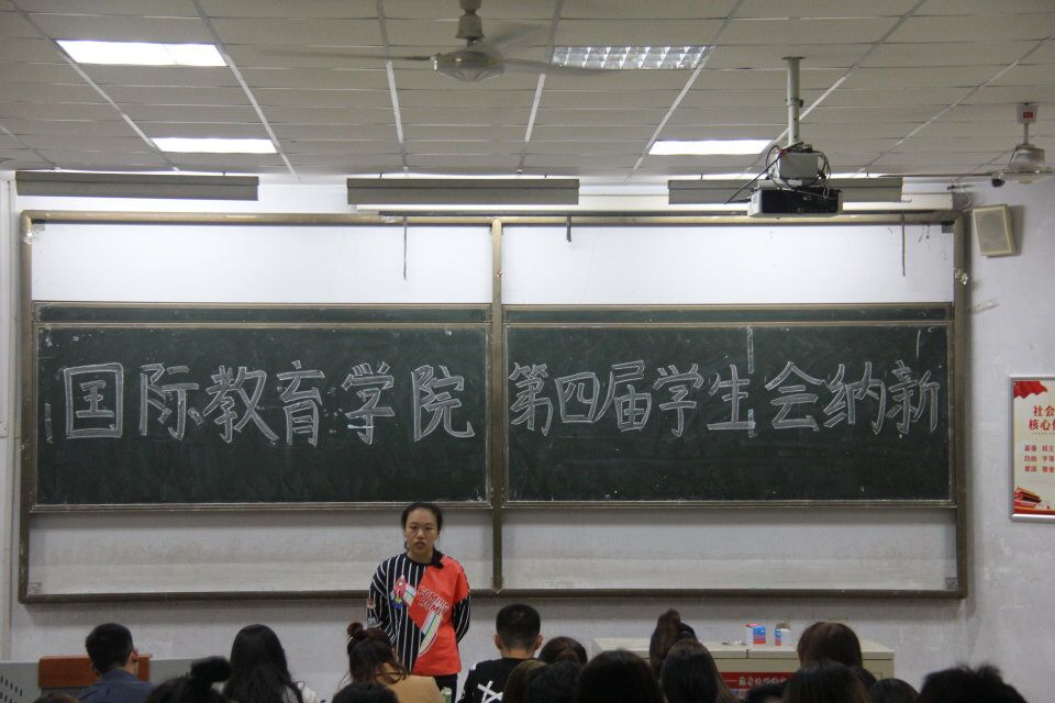 10月8日晚7点,国际教育学院第四届学生会纳新大会于教学区B104举行。主席团成员、各部部长出席,竞选的新生参加了此次大会。