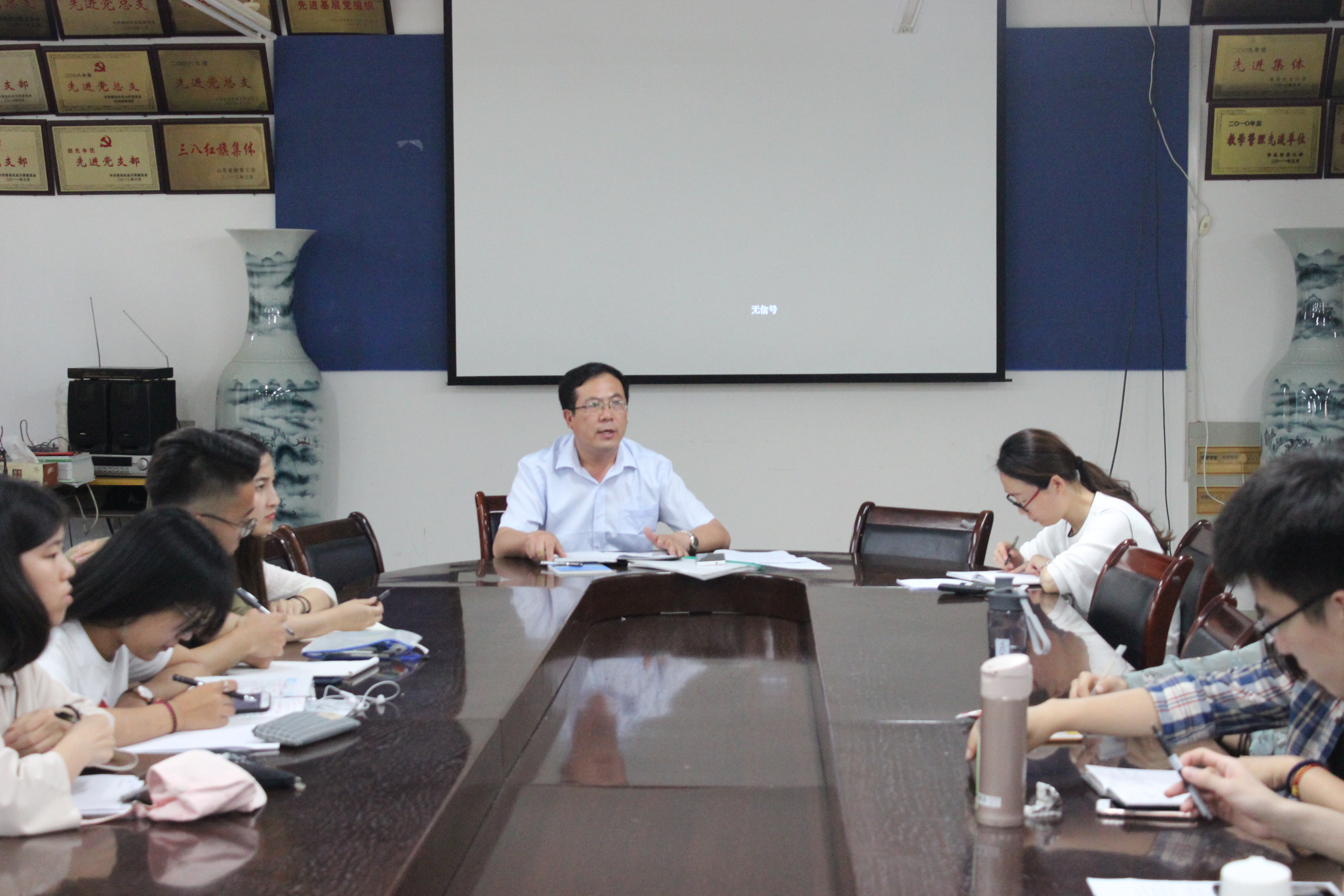 6月20日,外国语学院于文经楼资料室召开班长书记例会。会议由学院党委副书记王晓雷主持,学院团委书记嵇安奕、学生会干部、班长书记参加会议。