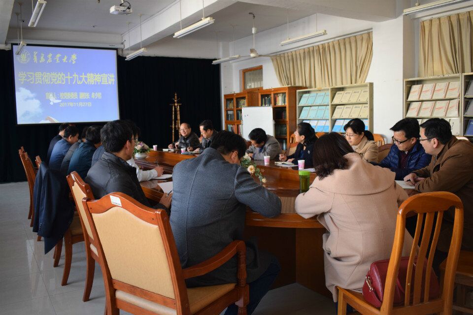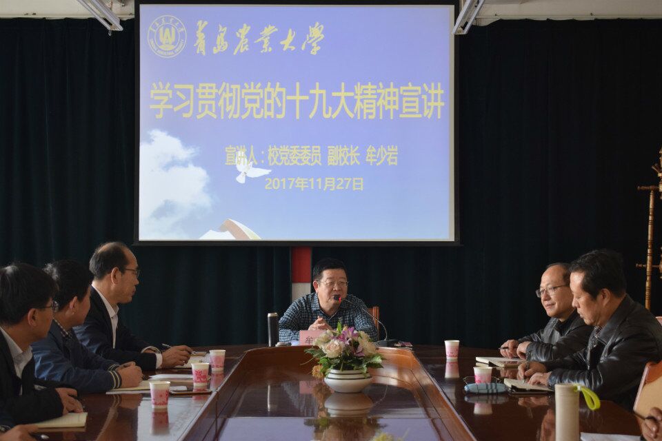 牟少岩指出,目前,全党全国都把学习贯彻落实党的十九大精神作为首要任务,在学懂弄通做实上下功夫。十九大精神的贯彻落实,与以往历次党的代表大会的学习贯彻落实相比,前所未有的重视,也是前所未有的扎实。他要求分管单位领导干部要充分认识学习好、贯彻落实好党的十九大精神的重大意义,把思想认识统一到党中央的要求上来,统一到党的十九大精神上来,带领所在单位师生员工认真学习和准确把握十九大提出的新思想、新论断、新方略、新目标,坚持学深悟透用好,把学习十九大精神激发出的热情和干劲转化为推动学校事业发展的强大动力。