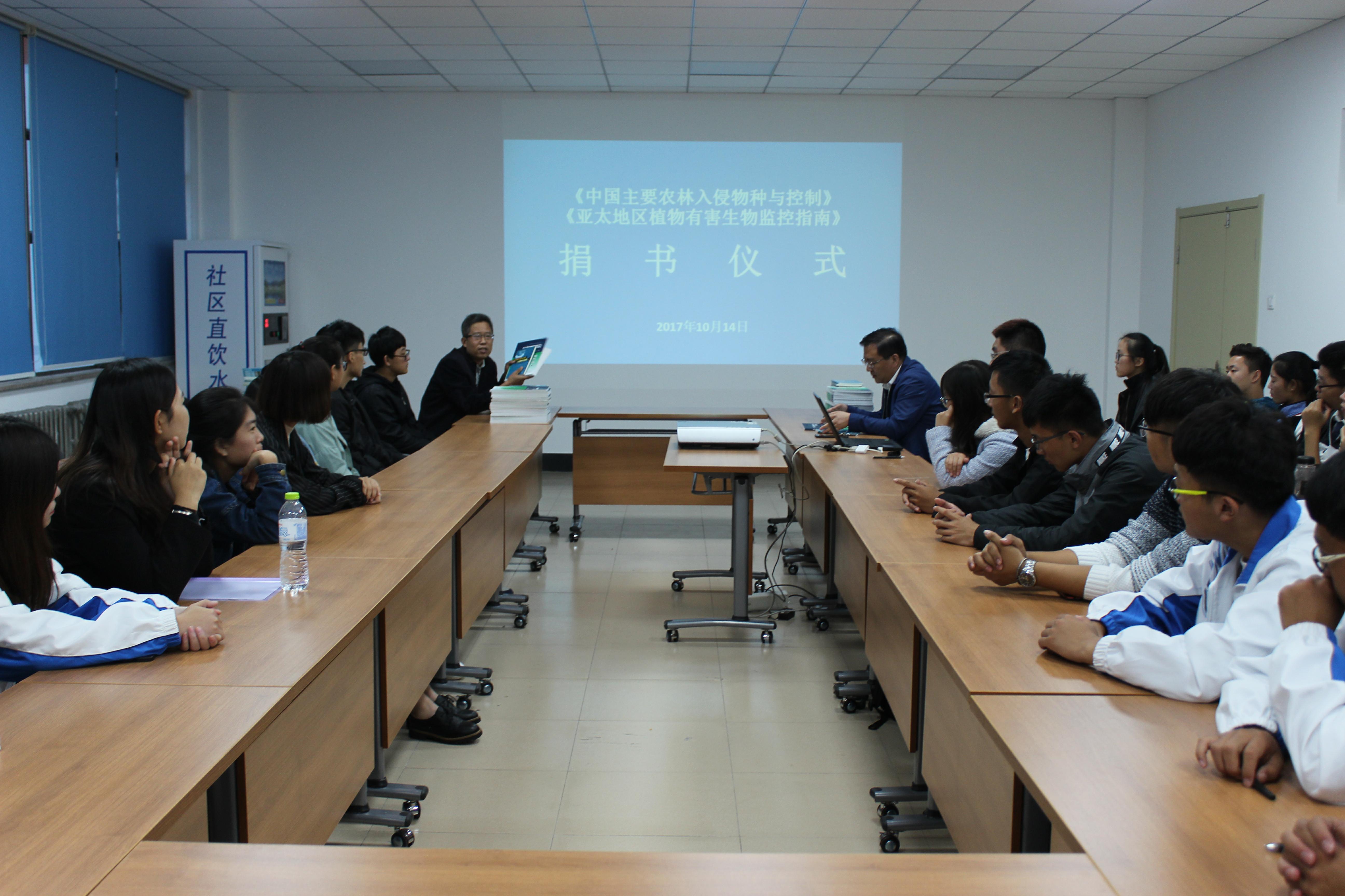 10月14日下午,植物医学学院在生物楼N406举行专业书籍捐赠仪式。学院党总支副书记、副院长李军和周洪旭教授出席本次仪式,学院本科生和研究生代表参加。
